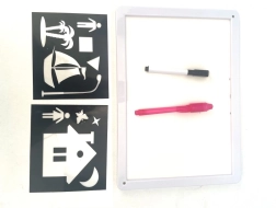 Dėl lengvos ir nešiojamos konstrukcijos idealiai tinka namuose ir kelionėse. Į rinkinį įtraukti formų trafaretai (namas, laivas, raketa, personažai, mėnulio motyvai), kurie padeda lavinti kūrybiškumą, vaizduotę ir smulkiąją motoriką.