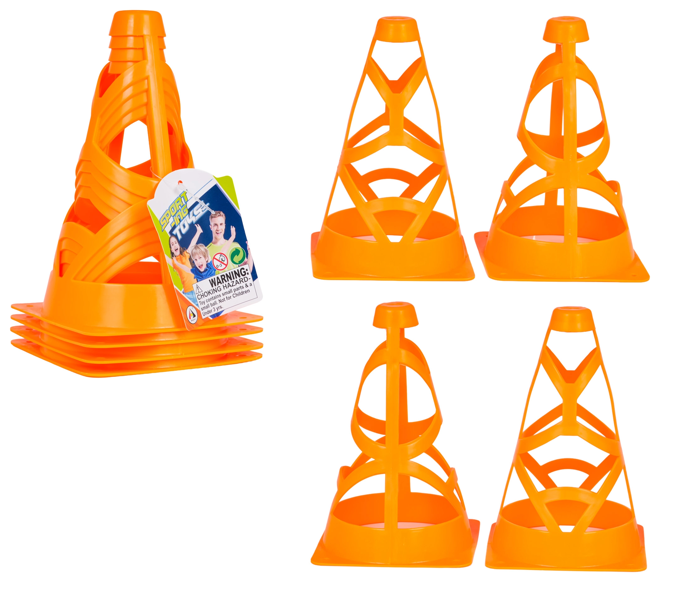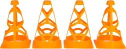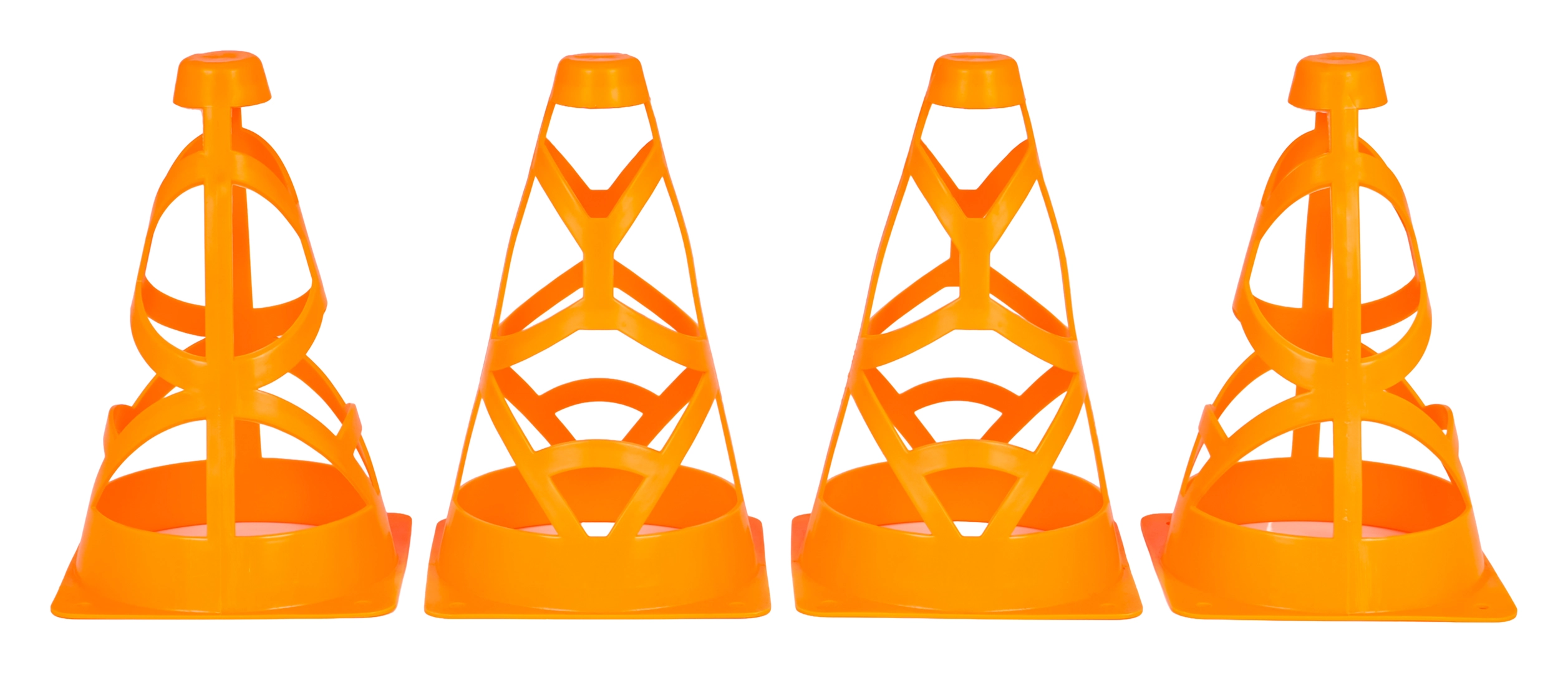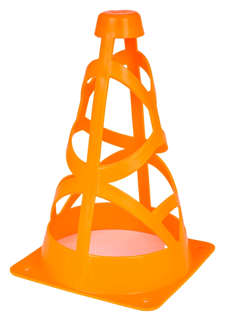 Universalūs treniruočių kūgiai ryškios oranžinės spalvos padės pažymėti takelius, zonas ir kliūtis žaidimų bei sporto metu. Dėl lengvos plastikinės konstrukcijos juos paprasta nešiotis, o sukraunama forma taupo vietą sandėliuojant. Atvira „grotelinė“ struktūra ir angų kampuose esanti bazė leidžia kūgius saugiai įtvirtinti ir mažina vėjo pasipriešinimą.