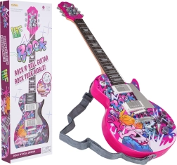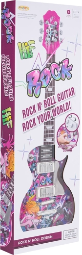Ši patraukli rožinė elektrinė gitara vaikams sukurta taip, kad savo išvaizda primintų tikrą instrumentą ir skatintų vaikus žengti pirmuosius žingsnius muzikoje. Aiškūs valdikliai leidžia lengvai pasirinkti garsumą, ritmą ir garsinius efektus, o taip pat įjungti 8 iš anksto nustatytas melodijas akompanimentui.