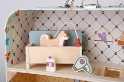 Atraskite žavingą lagaminėlį, kuris atidarius virsta jaukiu nameliu šunims. Šis nešiojamas rinkinys siūlo stilingus aksesuarus, miniatiūrinius baldus ir 24 detales begaliniam žaidimui. Idealus kelionėms ir namams – skatina vaizduotę, rūpestį gyvūnais ir savarankišką istorijų kūrimą.