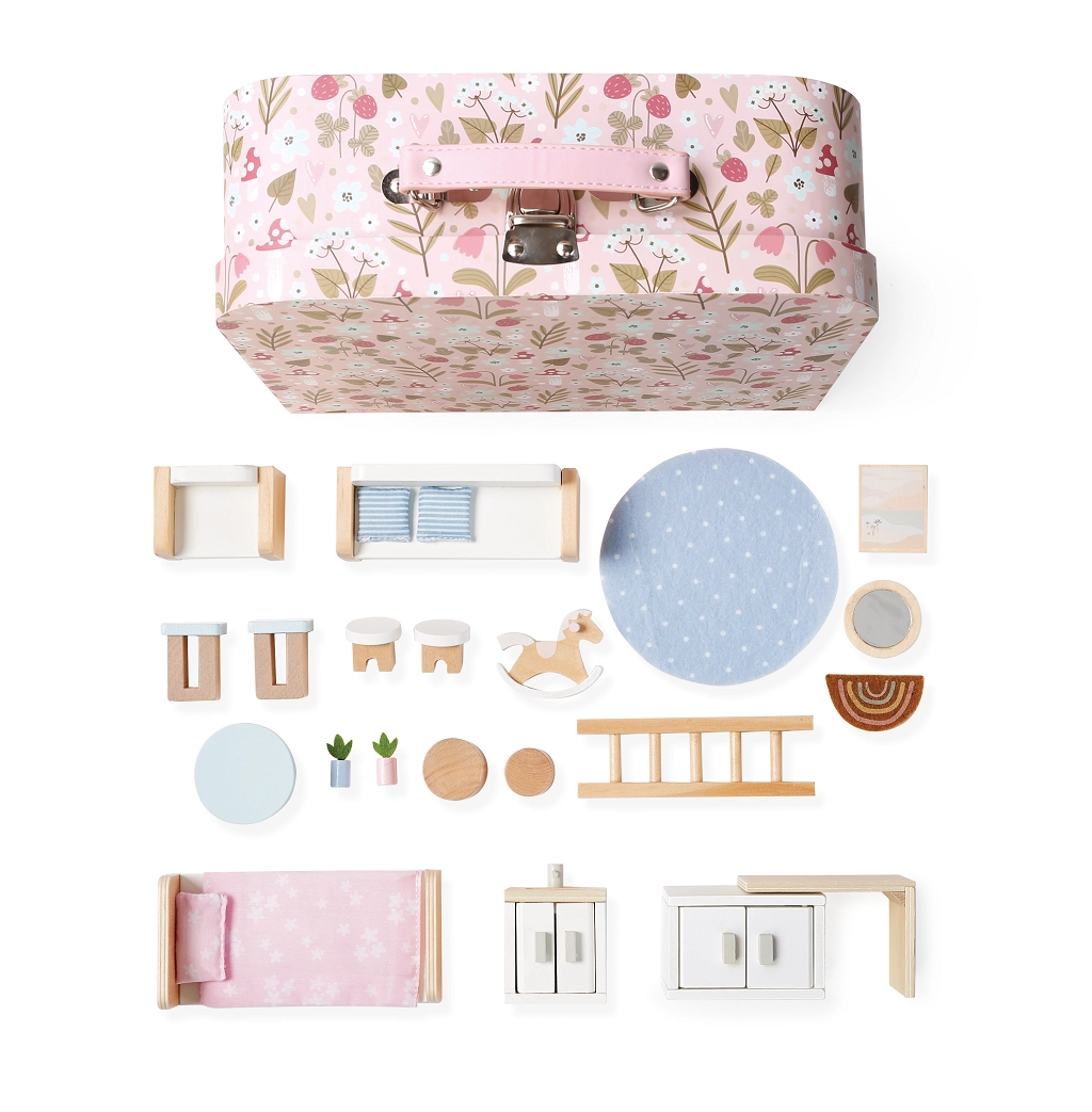 Šis lagaminėlio tipo namelis yra puiki dovana mažiesiems lėlių mylėtojams. Jis pasižymi kokybišku apdirbimu, lengvu pernešimu ir ilgomis kūrybinio žaidimo valandomis namuose ar kelionėse.