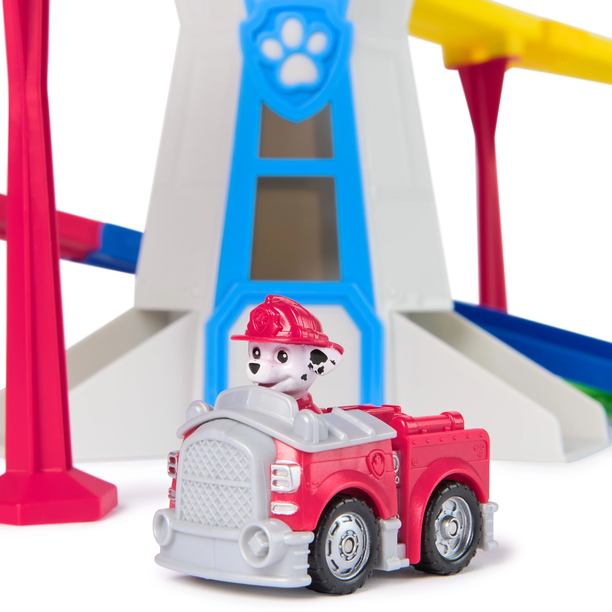 Šis tvirtas ir spalvingas žaidimų rinkinys, įkvėptas ŠUNIUKŲ PATRULIO pasaulio, nukelia vaikus į Adventure Bay. Bokštas su realistiškomis detalėmis ir dviejų pločių rampomis leidžia leisti transporto priemones tiesiai į veiksmą – tereikia pastatyti automobiliuką viršuje ir leistis į gelbėjimo misiją.