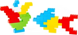 Didelės spalvotos kaladėlės leidžia vaikams kurti įvairius modelius ir lavinti vaizduotę bei smulkiąją motoriką.