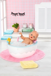 Interaktyvi BABY born vonia suteikia vaikams smagią maudynę su veikiančiu dušu, spalvotu LED apšvietimu ir realistiškais vandens garsais. Rinkinyje yra purškianti ančiukė ir minkšta pagalvėlė. Tinka lėlėms 36–43 cm, veikia su baterijomis (nepridedamos).