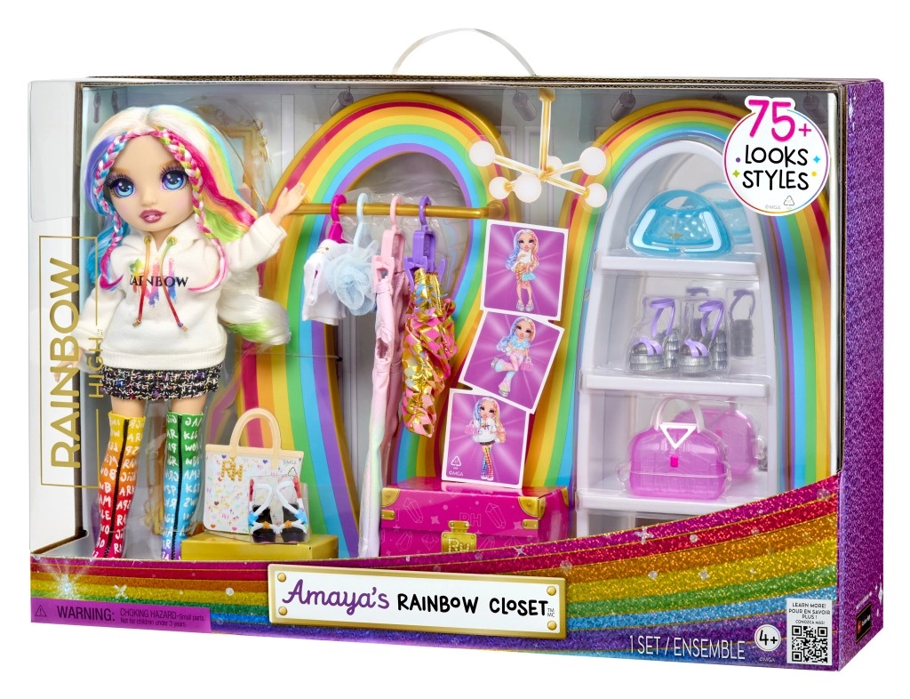 Atras mados pasaulį su Rainbow High žaidimų rinkiniu – spinta su lėle, siūlančia begalines stiliaus galimybes. Viduje rasi lėlę su vaivorykštės spalvų plaukais, stilingus drabužėlius ant pakabų, rankines ir batus, kad sukurtum daugiau nei 75 derinius. Dėl praktiškos spintos ir stovo su pakabomis gali maišyti ir derinti atskiras dalis, jas eksponuoti ir smagiai rengti mados šou. Rinkinys skatina kūrybiškumą, vaizduotę ir kolekcionavimo džiaugsmą visiems RAINBOW HIGH gerbėjams.