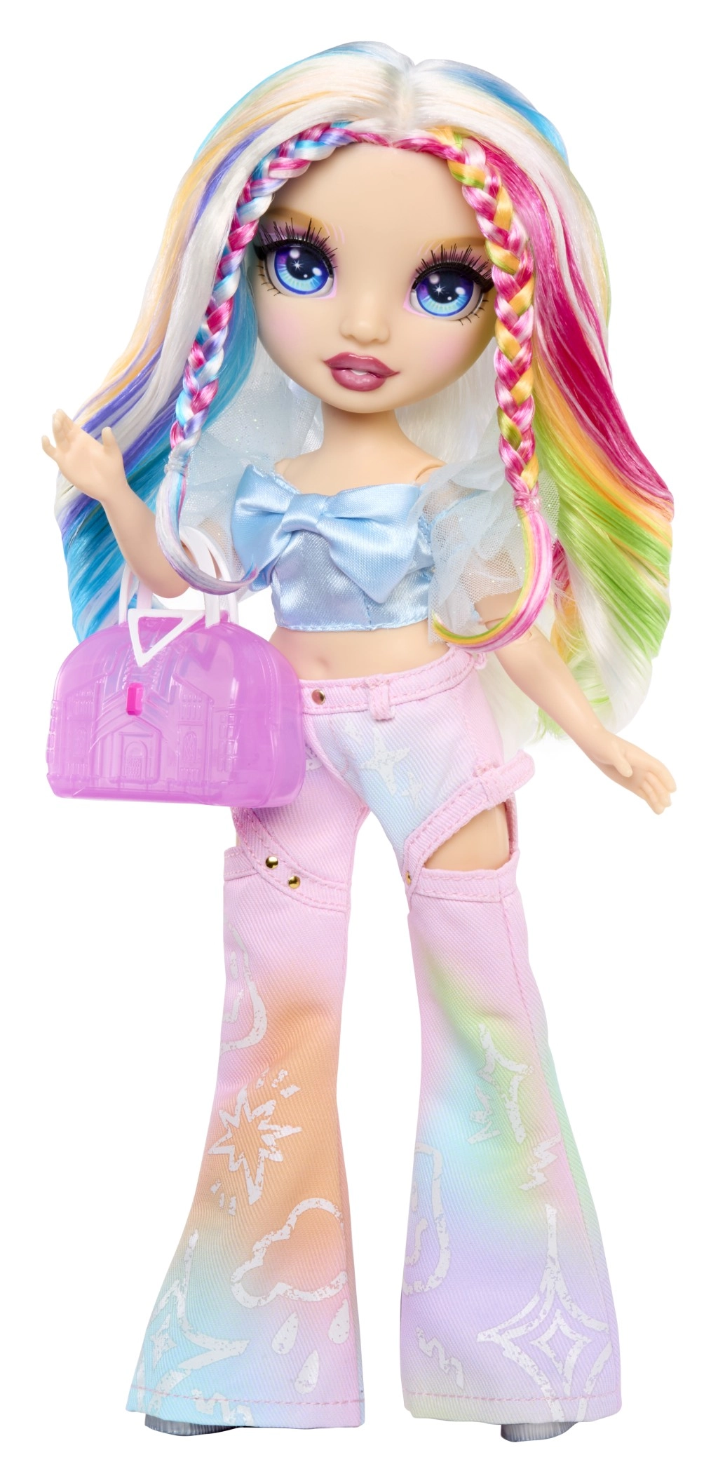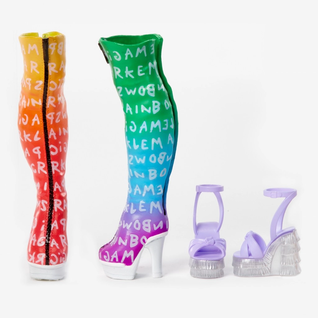 Lėlė su ilgais vaivorykštės spalvų plaukais ir detalizuotais aksesuarais puikiai tinka pozavimui, fotografavimui ir mados pasirodymams.
