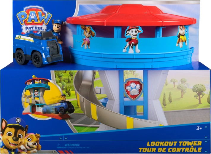 Didysis apžvalgos bokštas yra visų Adventure Bay misijų centras. Vaikai lengvai atkurs mėgstamas ŠUNIŲ PATRULIO scenas dėl išmanių funkcijų: kylant liftui Chase transformuojamas į veiksmo režimą, spiraline čiuožykla jis nusileidžia tiesiai prie automobilio, o paleidimo rampa akimirksniu pradeda gelbėjimo veiksmą.