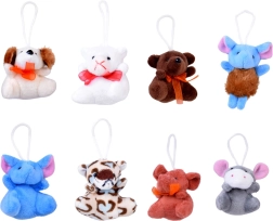 Kiekvienas pliušinukas turi virvelę pakabinimui – puikiai tinka kalėdinei eglutei, raktams, kuprinei ar striukės užtrauktukui.