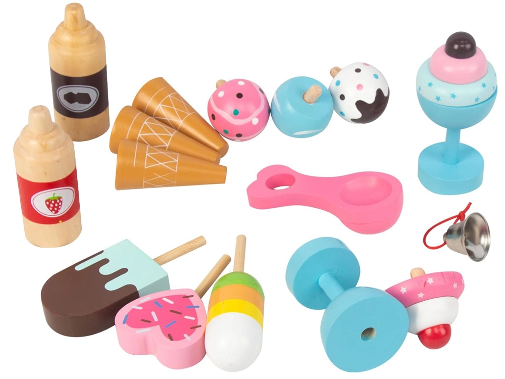 Sirupai, taurės, rageliai, ledai ant pagaliuko ir samtelis – viskas autentiškai ledainės patirčiai, papildyta varpeliu ir kabliukais.