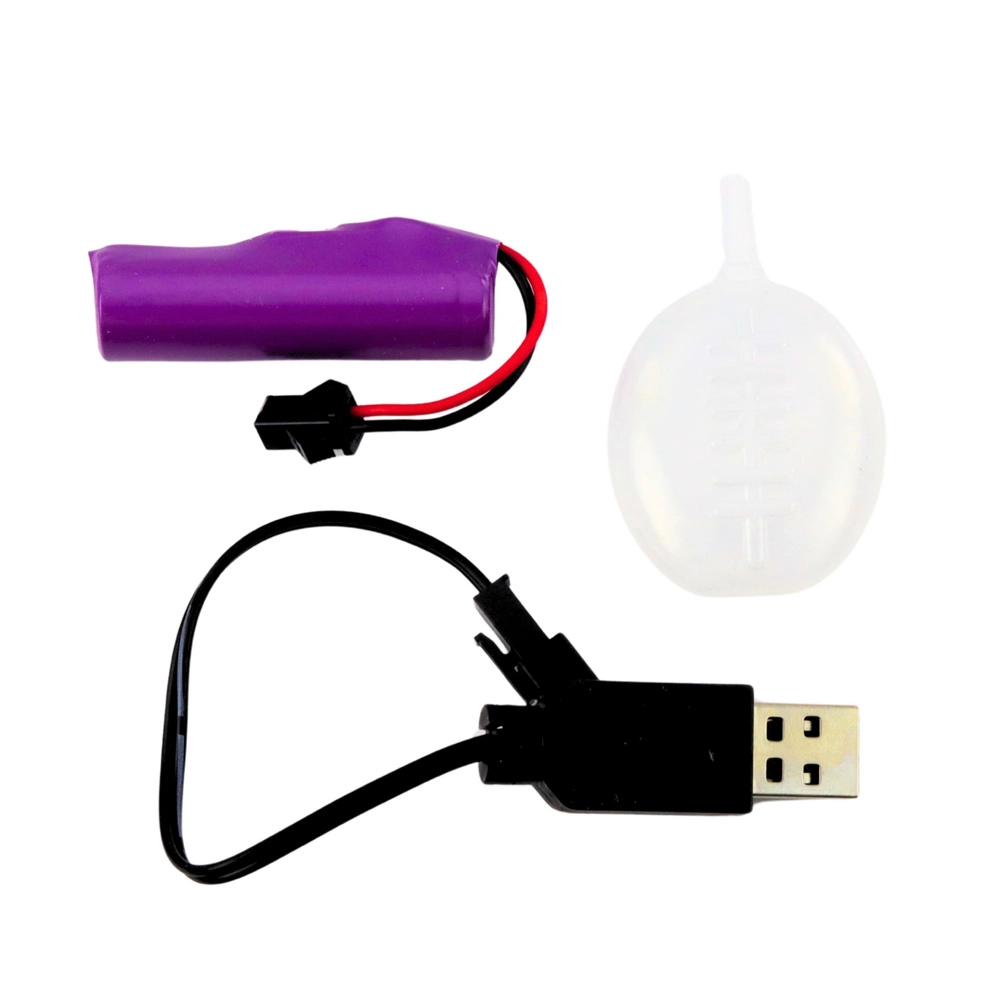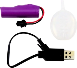 - Įkraunamas akumuliatorius 3.7 V 500 mAh ir USB įkrovimas komplekte.