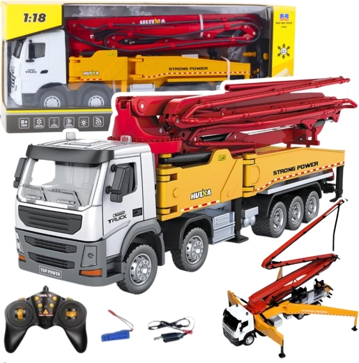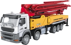 Ši metalinė RC statybinė maišyklė su siurbliu tikroviškai atkuria tikro statybinio automobilio darbą. Elektriškai sukama platforma (630°), 120 cm išslenkanti strėlė ir atramos stabilumui leidžia atlikti realistiškus „statybinius“ veiksmus. Vienu mygtuku įjungsite vandens purškimą, o tai dar labiau sustiprina žaidimo autentiškumą.