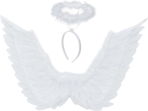 Lengvi balti angelų sparnai su puria aureole ant lankelio – puikus aksesuaras angelo, fėjos ar fantazijos personažų kostiumams. Dėl elastingų dirželių jie patogiai dėvimi ir tvirtai laikosi ant kūno. Elegantiškas, plunksninis dizainas atrodo realistiškai ir puikiai atrodo tiek gyvai, tiek nuotraukose. Paruoštas rinkinys – sparnai + aureolė akimirksniu užbaigs įvaizdį Helovinui, karnavalui, koncertams ar fotosesijoms ir pravers kaip stilinga dekoracija interjere ar scenografijoje.