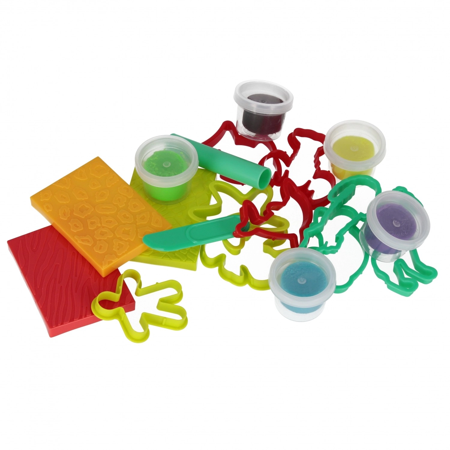 Šis žaismingas safari tematikos rinkinys suteikia vaikams begalę kūrybos galimybių. Dėl ryškių spalvų ir lengvai suimamų įrankių mažoms rankytėms patiks lipdyti, kočioti, spausti ir išpjauti gyvūnų formas bei kurti savo darbus.