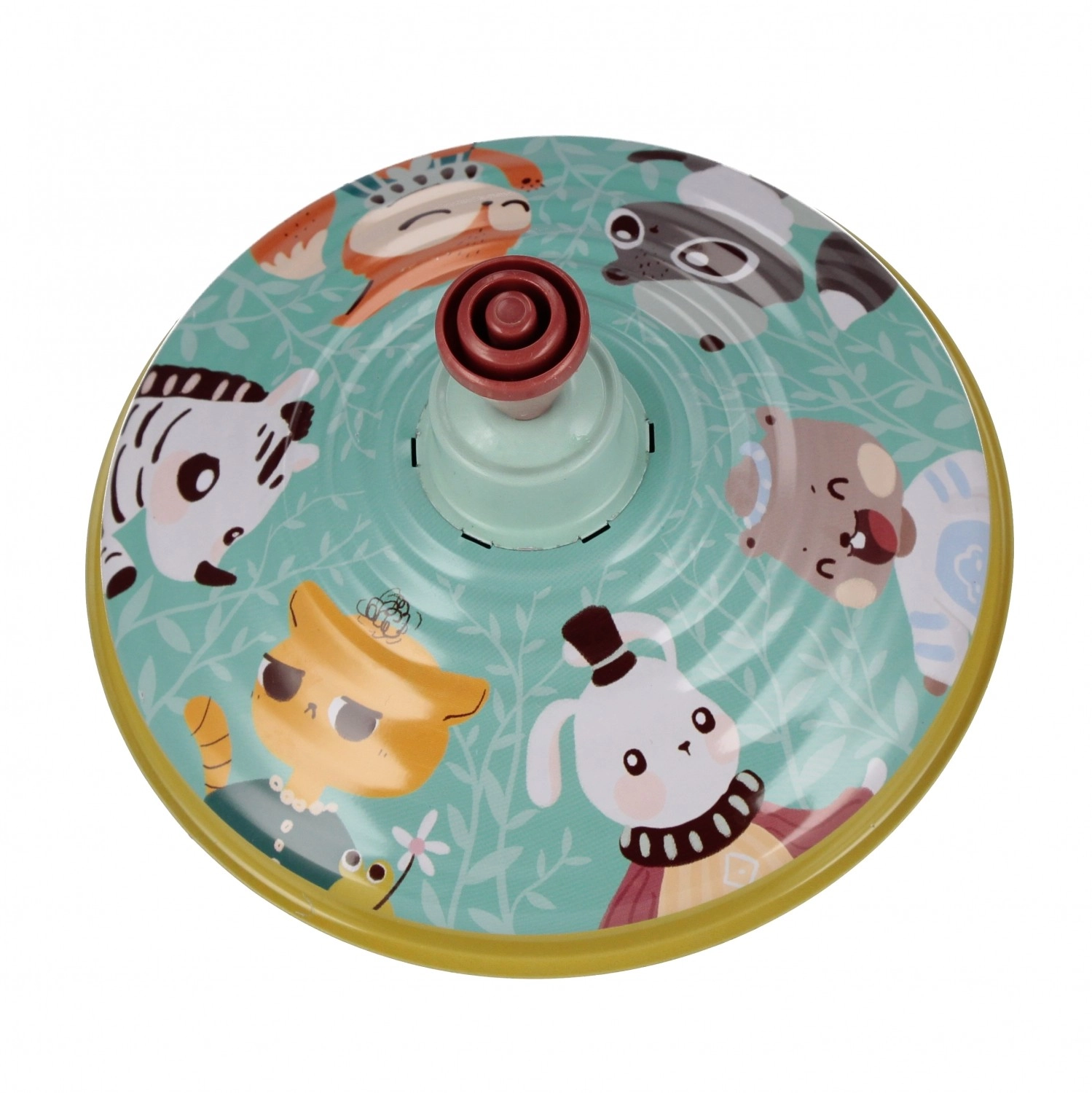 Klasikinis vaikų žaislas, džiuginantis kartas: metalinė vilkelė su pompute paspaudus įsisuka ir sukuria žavų spalvų sūkurį. Skatina smulkiąją motoriką, koordinacijos įgūdžius ir judesio suvokimą. Patvarus metalo korpusas, žaismingos iliustracijos ir tolygus sukimasis daro šį žaislą idealiu pasirinkimu vaikams nuo 3 metų.