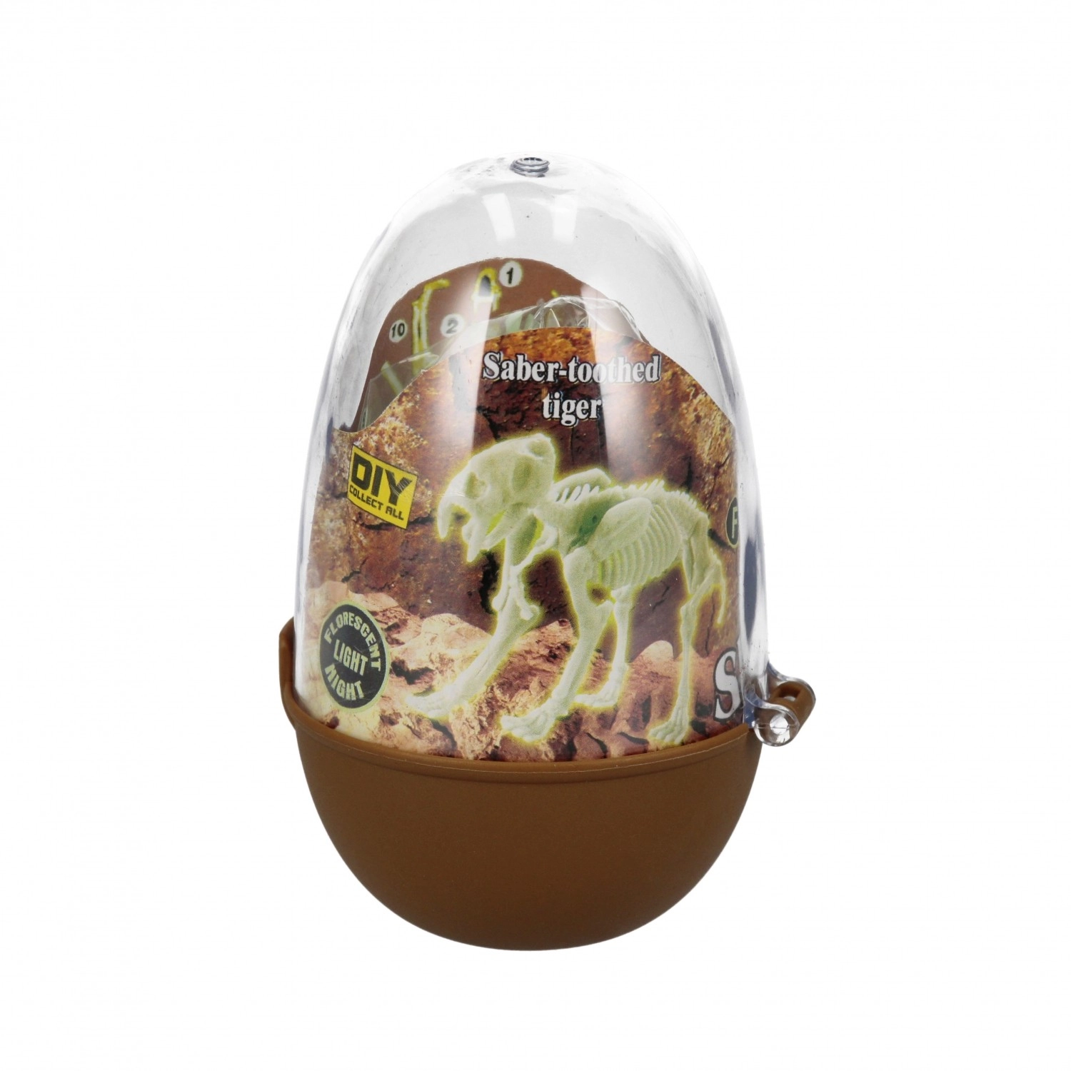 Plastikinis kiaušinis tarnauja kaip originali pakuotė ir talpykla visoms detalėms. Skaidri pusė leidžia eksponuoti surinktą modelį.