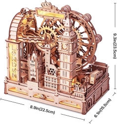 Susikurkite Londono atmosferą tiesiai namuose: detalios Big Beno, Tauerio tilto ir Londono akies miniatiūros atgyja išmaniajame mechaniniame modelyje su rutuliukų trasa. Dėl lazeriu išpjautų kokybiškos liepos faneros detalių ir apgalvoto pavaros mechanizmo mėgausitės tiksliu surinkimu ir sklandžiu veikimu. Realistiškos detalės, mechaninė rutuliukų trasa su varikliu, techninio mąstymo ir smulkiosios motorikos ugdymas, 431 detalė ir vidutinė–aukšta sudėtingumo kategorija žada puikią patirtį kiekvienam kūrėjui.