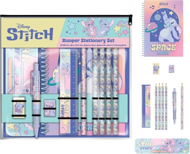 Atraskite mielą ir praktišką mokyklinį rinkinį su Lilo ir Stičo motyvu, kuris vaikams pagyvins kiekvieną mokyklos dieną. Šis didelis mokyklinių reikmenų rinkinys idealiai tinka kaip dovana mažiesiems mokinukams ir siūlo viską, ko reikia rašymui, piešimui ir tvarkai palaikyti.