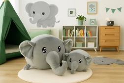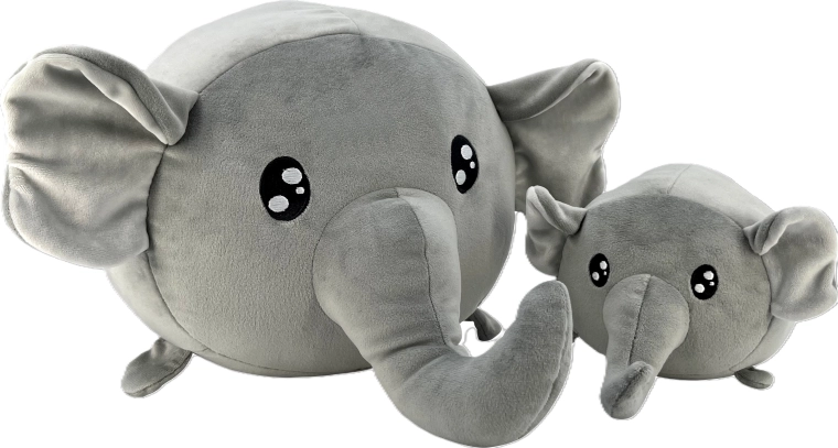 Šis universaliai pilkos spalvos pliušinių dramblių rinkinys sukurtas kasdieniam glostymui, žaidimams ir poilsiui. Aukštos kokybės minkštas pliušas švelnus vaiko odai, o saugios siuvinėtos akys užtikrina ramų žaidimą be smulkių dalių. Mažesnis drambliukas (20 cm) – puikus bičiulis į lovytę, o didesnis (40 cm) virsta patogia pagalvėle automobiliui arba stilinga vaikų kambario dekoracija.