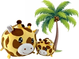 Dviejų išsiuvinėtų pliušinių žirafų rinkinys suteikia švelnų apkabinimą ir puošia vaiko kambarį. Apvalios formos, švelnus plišas ir saugios siūtos detalės užtikrina patogų glaustymąsi net patiems mažiausiems, o vyresni vaikai įvertins didesnę žirafą kaip pagalvėlę automobilyje ar kelionėse.
