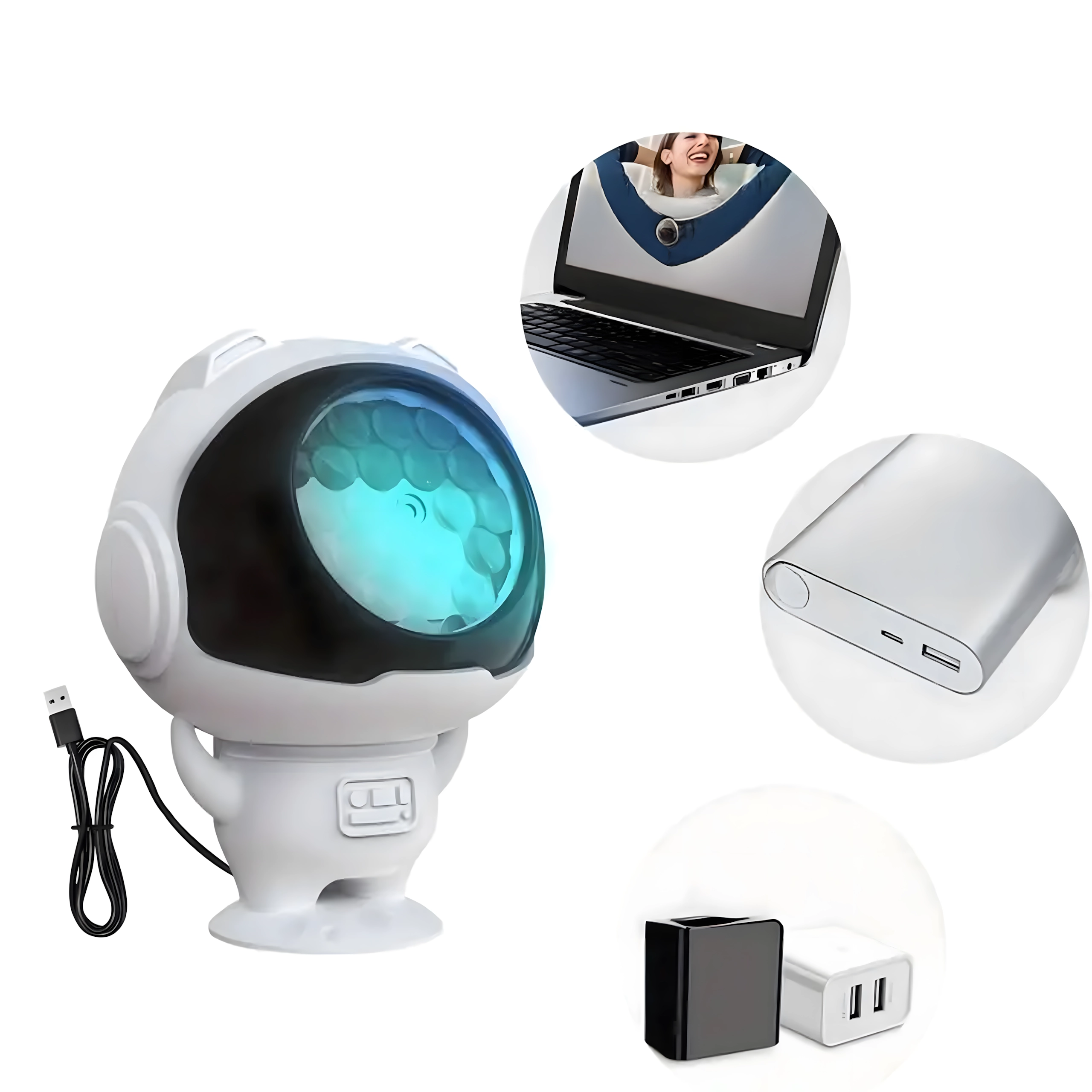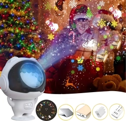 Sukurkite namuose magišką nuotaiką per šventes ir visus metus. Astronautinė projekcinė lempa su spalvotais raštais užpildo sienas ir lubas linksmomis temomis ir įneša į interjerą jaukios šviesos. Dėl kompaktiškų matmenų ir stabilaus stovo ją lengva pastatyti ant stalo, komodos ar palangės.