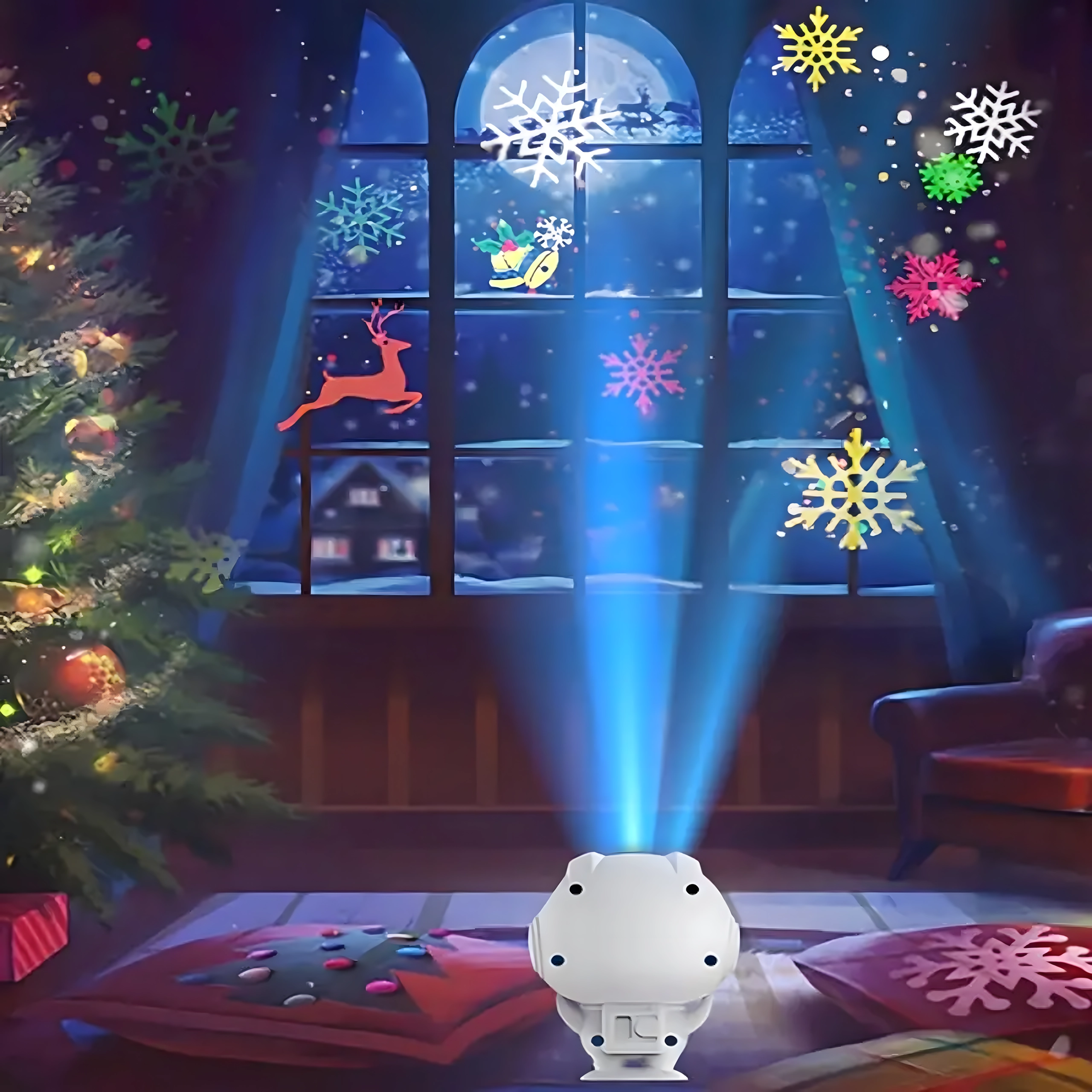 Kompaktiškas astronauto formos projektorius su stabiliu stovu tinka ant stalo, lentynos ar palangės ir puikiai papildo žiemos dekorą.
