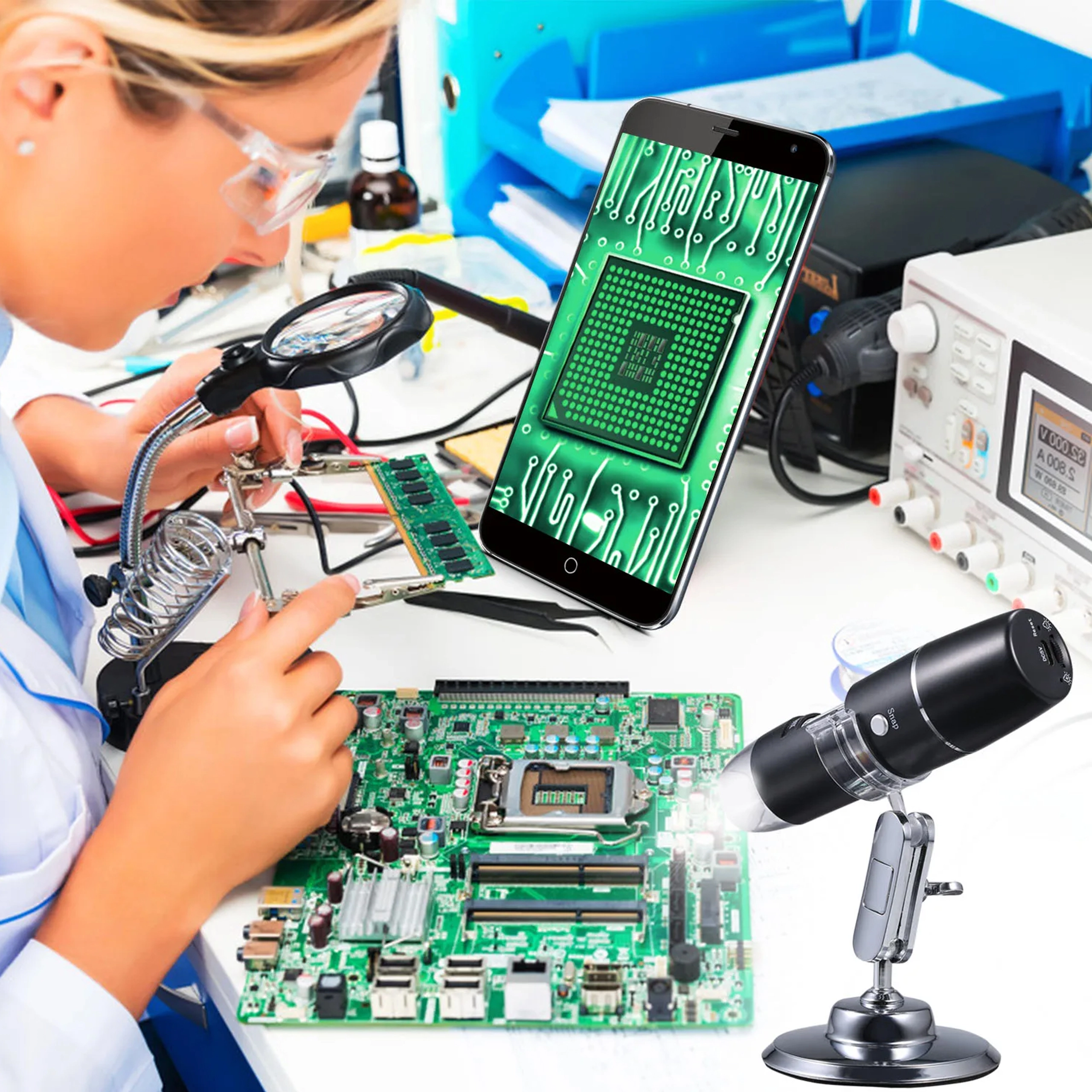 Tyrinėkite mikrodetaIes su dideliu didinimu ir tiksliu fokusavimu pasukamu žiedu. Idealu elektronikai, tekstilei ir biologiniams mėginiams.