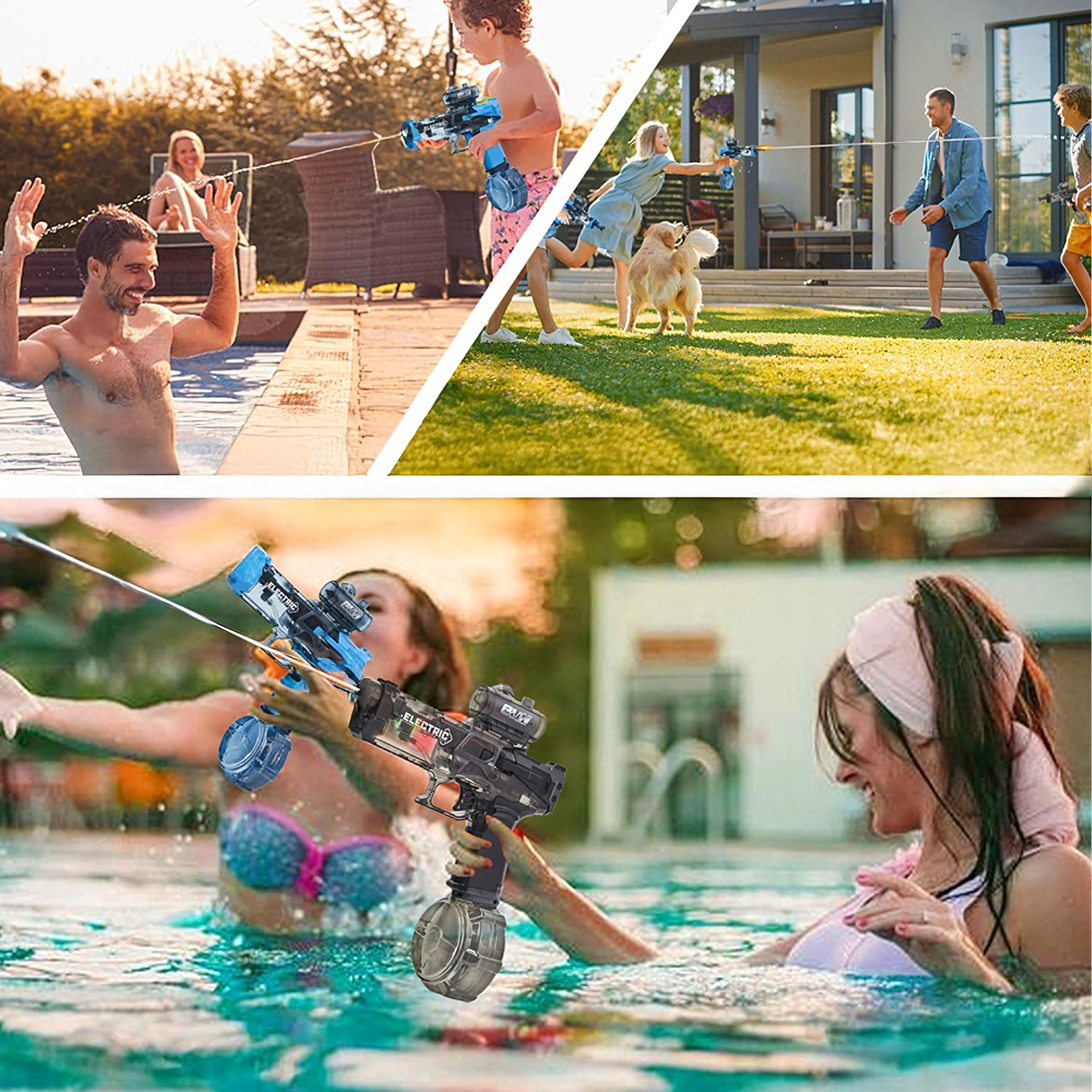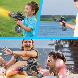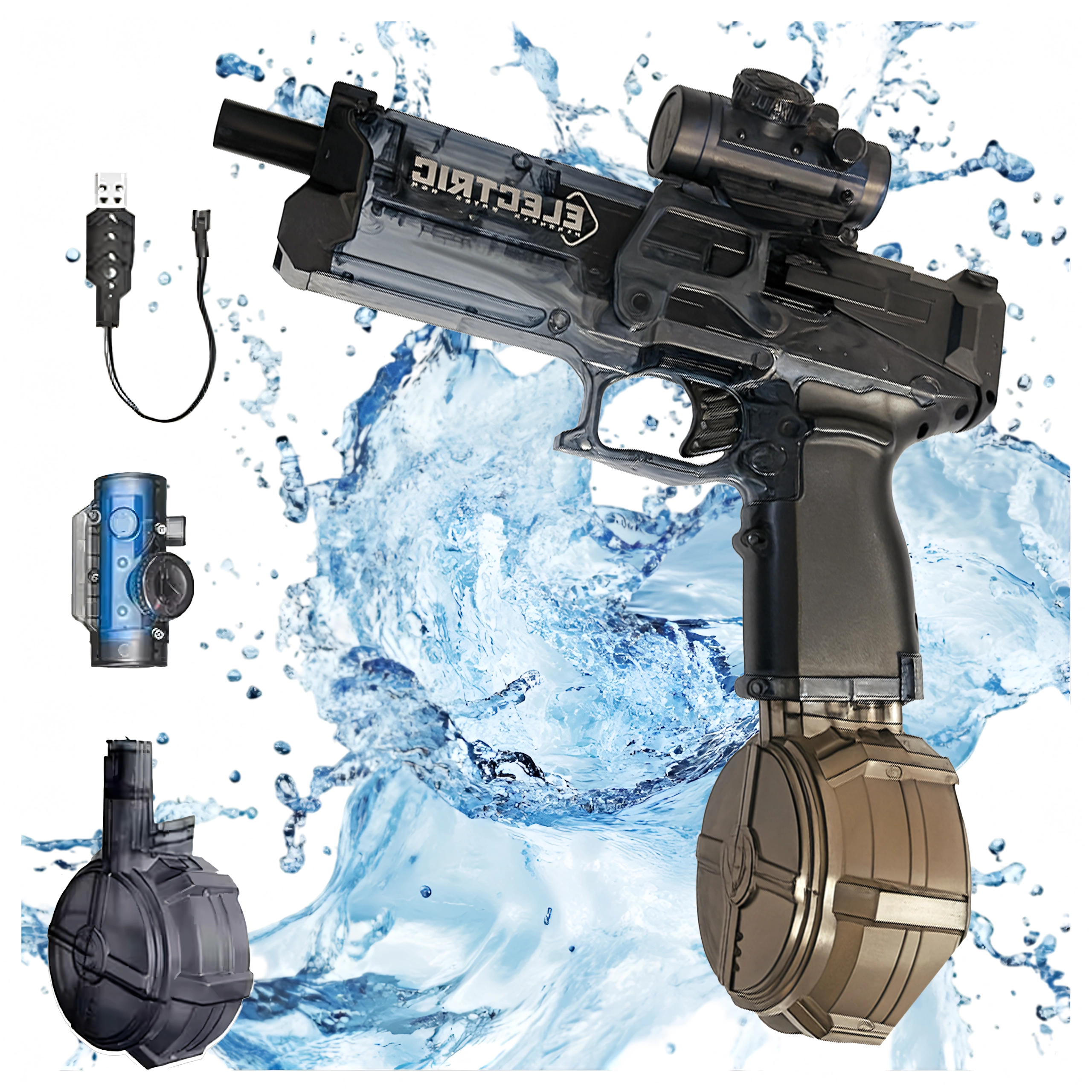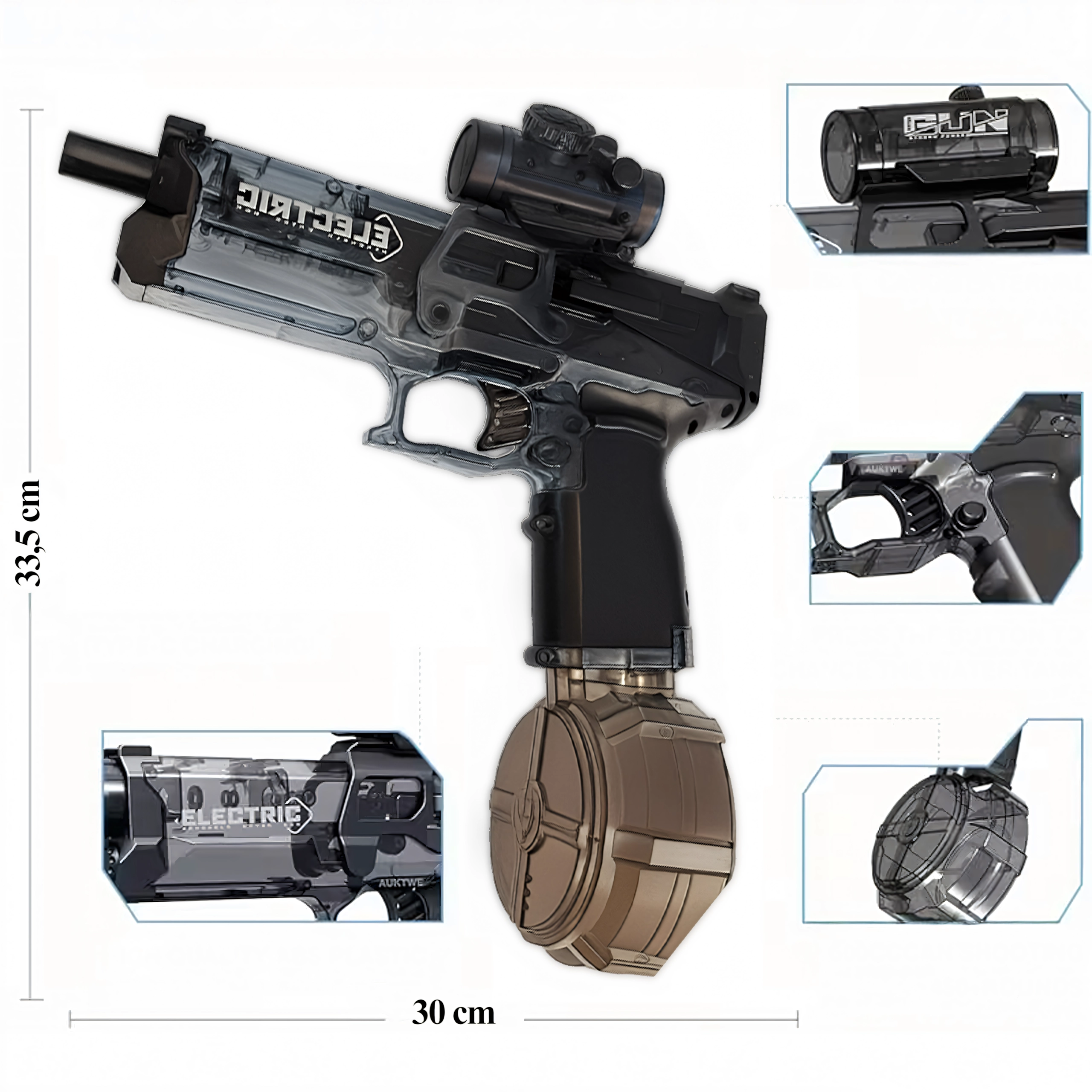 Mėgaukitės vasaros mūšiais su elektriniu vandens pistoletu, turinčiu automatinę šaudymo sistemą, didelį bakelį ir integruotą USB akumuliatorių. Jis užtikrina iki 35 minučių nepertraukiamos veiklos ir iki 10 metrų nuotolį – maksimaliai linksmybėms prie baseino ir sode.