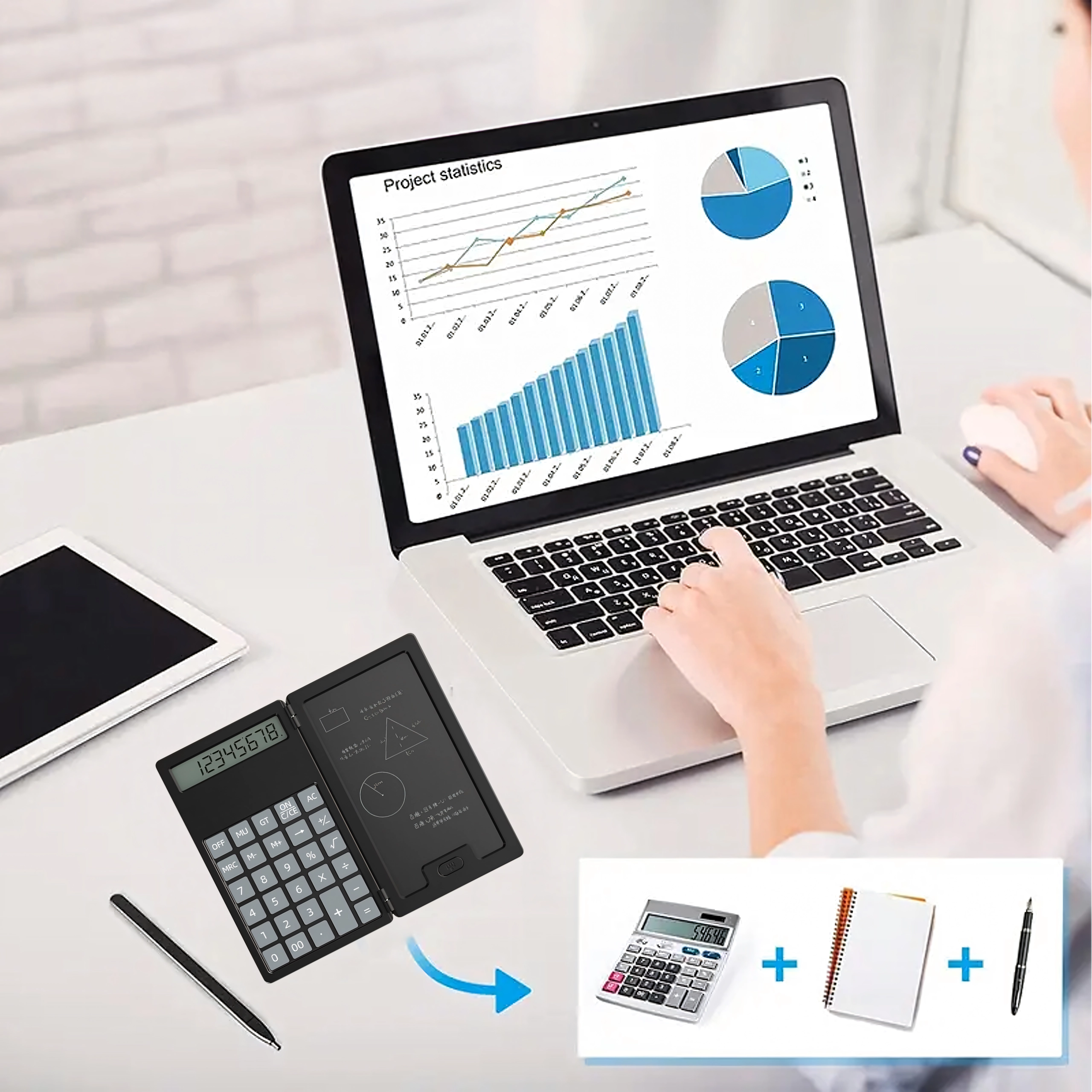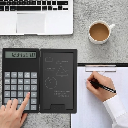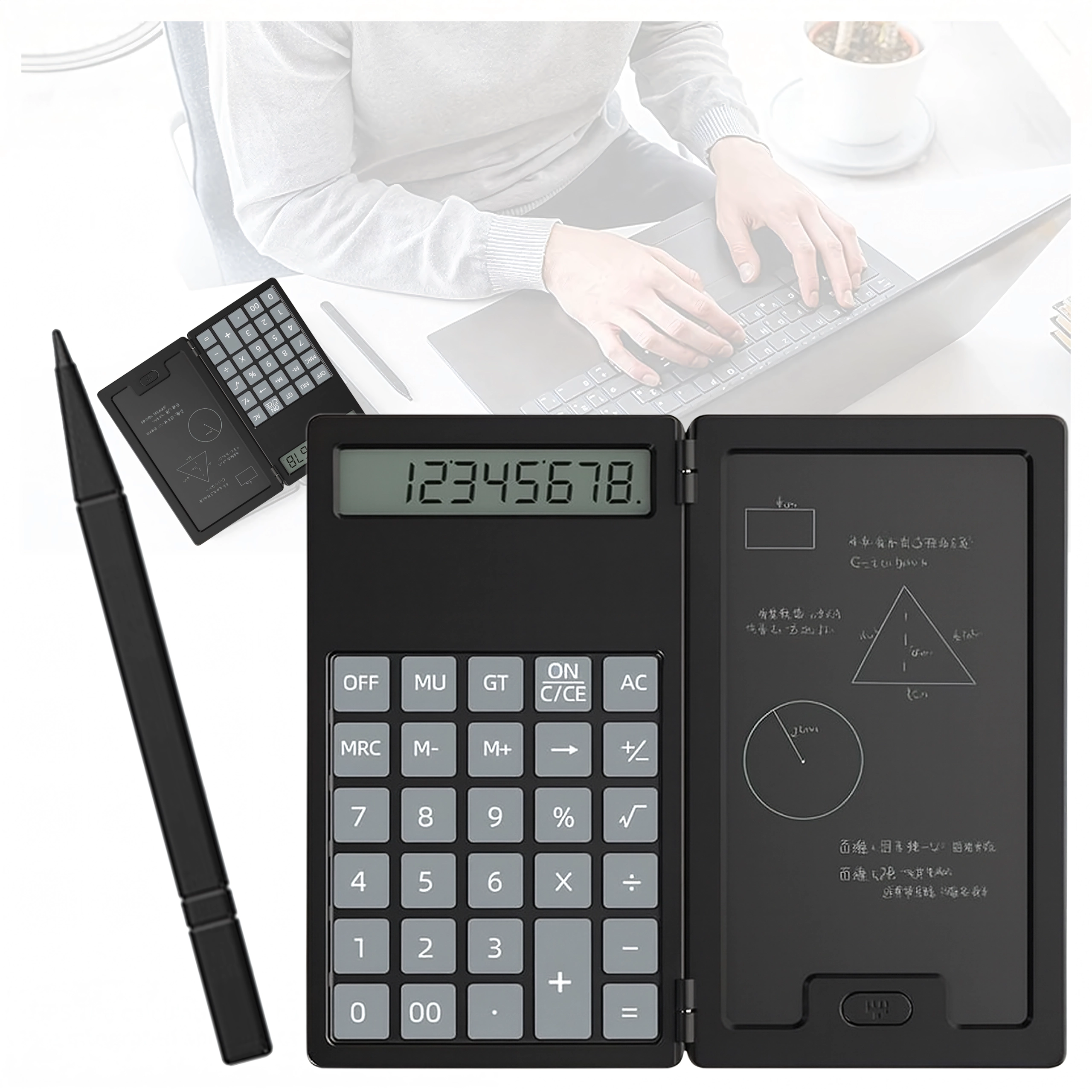 Šis išmanus skaičiuotuvas su sulankstomu korpusu sujungia klasikinius skaičiavimus su praktiška LCD užrašų lentele. Dėl lengvos ir plonos konstrukcijos jį lengvai įsidėsite į krepšį ar kišenę ir visada turėsite po ranka greitiems skaičiavimams ir pastaboms.