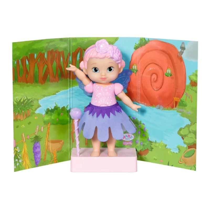 Lėlė BABY born Fialkinė fėja atneša savo pasakų pasaulį su interaktyvia scena ir stebuklinga knygele.