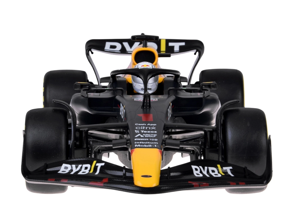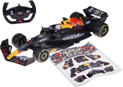 Licencijuotas RC modelis ORACLE RED BULL RACING RB18 tikroviškai atkuria tikrą „Formulės 1“ bolidą – nuo aerodinaminių sparnų iki autentiškų spalvų. Žemas svorio centras ir patvari plastikinė važiuoklė palengvina valdymą, o guminės padangos pagerina sukibimą greitai įveikiant posūkius.