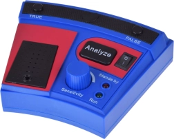 Konsolė su dideliu mygtuku Analyze, įjungimo jungikliu ir ryškiais LED indikatoriais TRUE/FALSE užtikrina aiškų žaidimą net pradedantiesiems.