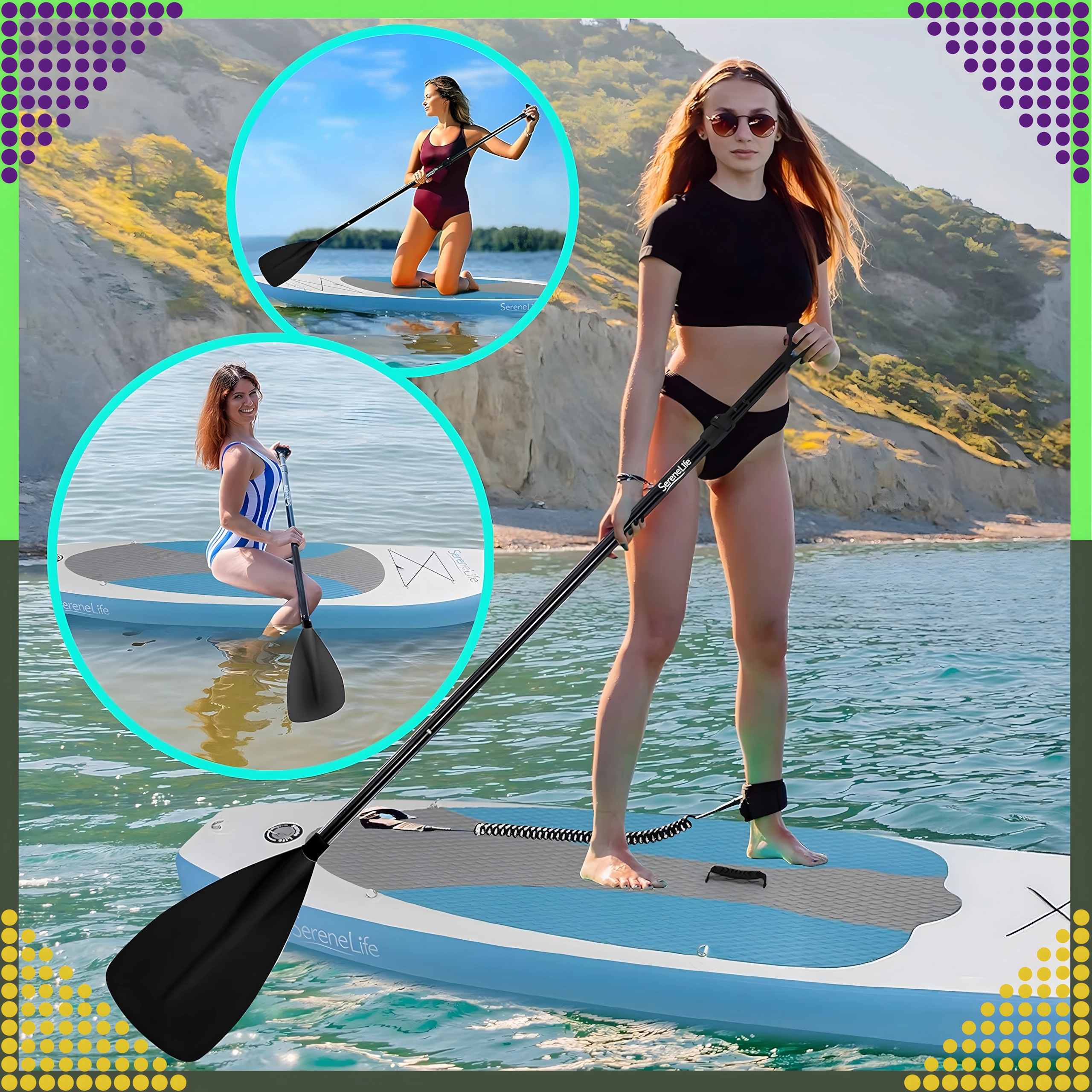 Dėl 3 dalių sulankstomos konstrukcijos irklą lengva sudėti į kuprinę prie lentos. Suformuota mentė užtikrina efektyvų mostą ir stabilų kursą, o T-grip rankena suteikia tvirtą sukibimą vaikams, paaugliams ir suaugusiesiems.