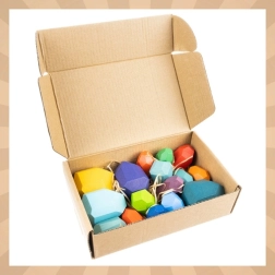 Medinės akmens formos kaladėlės iš Kruzzel natūraliai skatina vaiko raidą. Dėl daugelio spalvų ir skirtingų dydžių vaikai treniruoja smulkiąją motoriką, rankos–akies koordinaciją ir kantrybę. Patvarus medis malonus liesti ir tinkamas kasdieniam žaidimui.