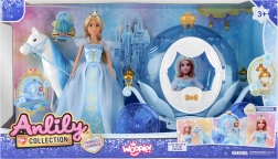 Žavingas rinkinys mažosioms pasakų mylėtojoms suteikia viską karališkai pramogai: princesę su blizgančia mėlyna suknele ir karūna, didingą baltą žirgą bei didelę karietą su permatomais elementais, kurie žaidimo metu šviečia. Ilgi blondiniai lėlės plaukai ir kruopščiai sukurti priedai skatina fantaziją ir istorijų pasakojimą.