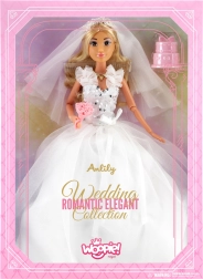 Pasinerkite į elegancijos ir romantikos pasaulį su vestuvine lėle Lily. Graži nuotaka su balta, tiuline suknele, puošniu korsetu ir subtiliu veliumi sužavės kruopščiai apgalvotomis detalėmis. Rankoje ji laiko mielą rožių puokštę, o ilgi šviesūs plaukai kviečia šukuoti ir kurti šukuosenas.