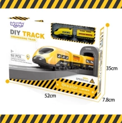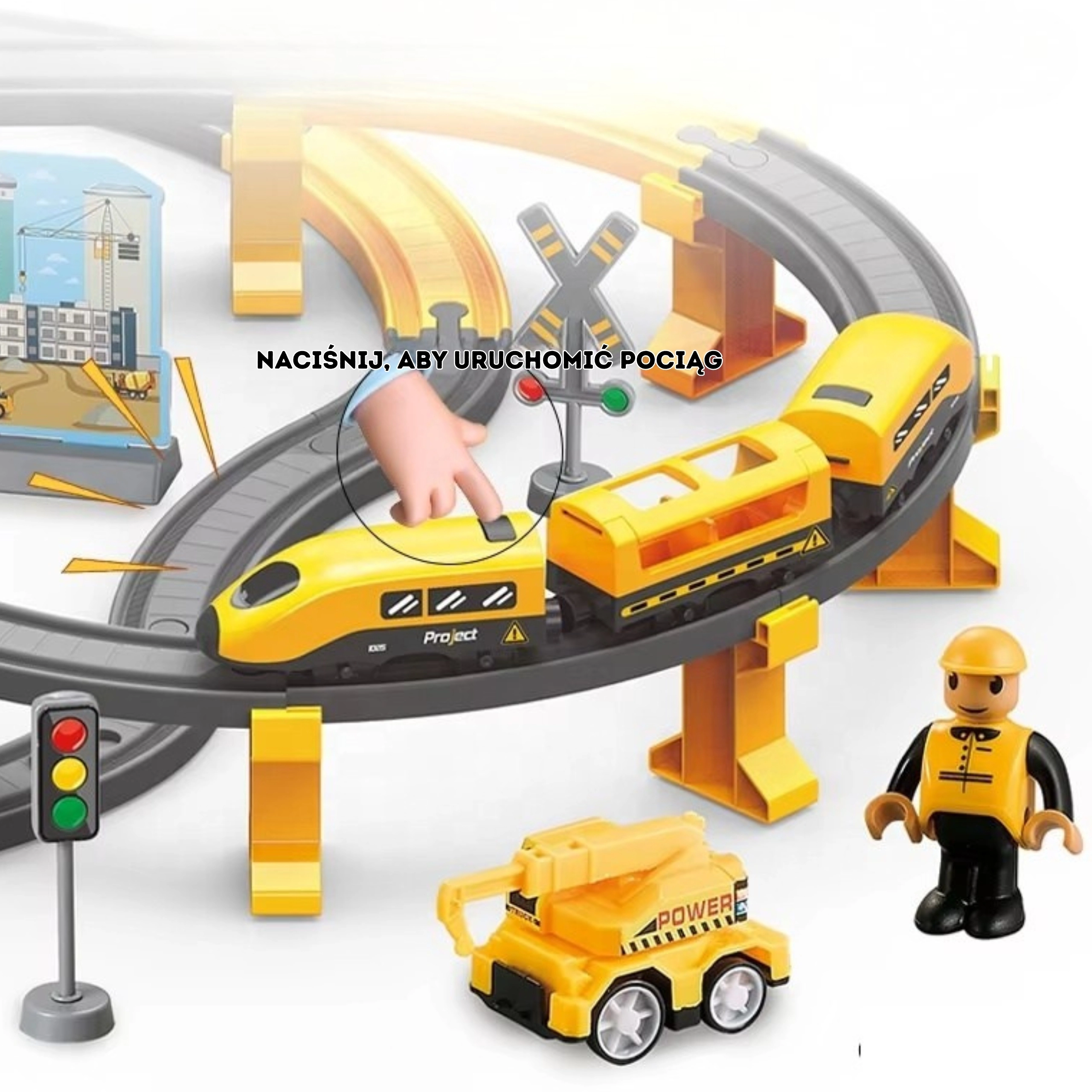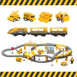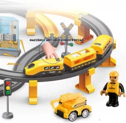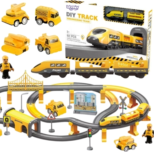 Dėl 92 elementų vaikai gali laisvai keisti bėgių išdėstymą ir kurti naujus ratus. Magnetinės jungtys palengvina dviejų vagonų prijungimą, o pridedama statybinė technika, darbuotojo figūrėlė ir peronas su stoties pastatu sukuria gyvą sceną. Rinkinys lavina smulkiąją motoriką, loginį mąstymą, kūrybiškumą ir savarankiškumą.