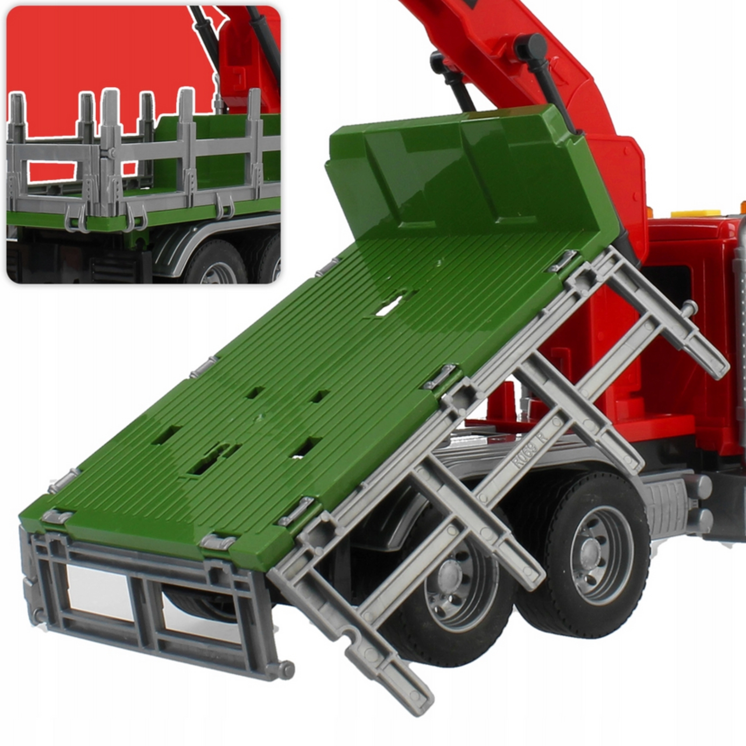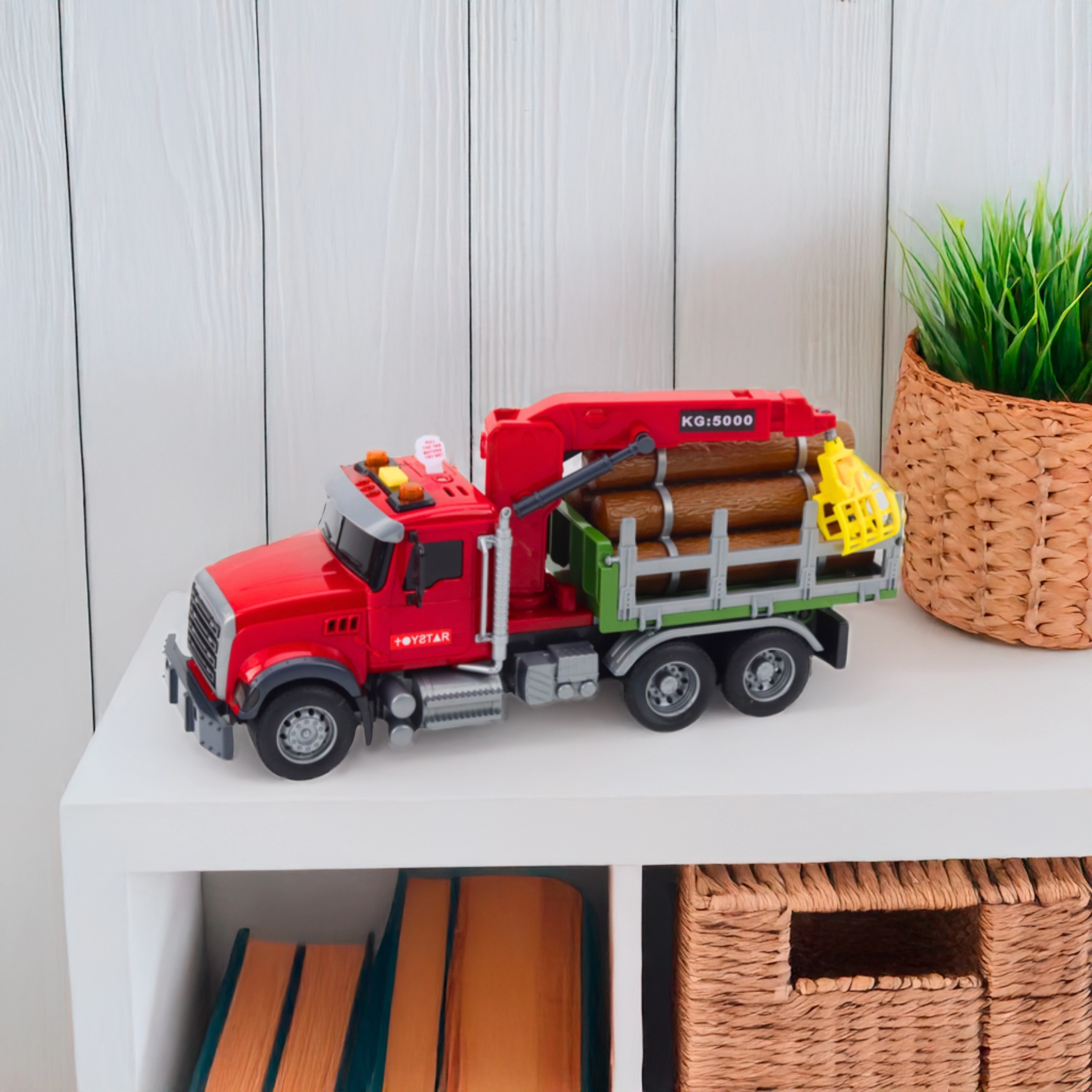 Atraskite sunkiosios technikos pasaulį su WOOPIE sunkvežimiu masteliu 1:14. Vaikas gali rankiniu būdu valdyti pasukamą kraną su mechaniniu griebtuvu, perkelti pridėtus rąstus ir imituoti tikrą miškininkystės darbą. Žaidimą sustiprina realistiški variklio, signalo ir krano darbo garsai bei ryškūs LED efektai.