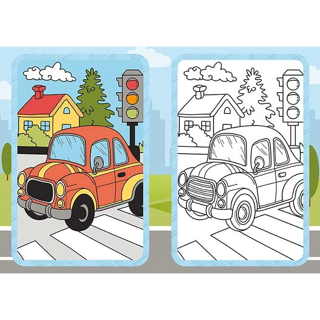Smagi spalvinimo knygelė su transporto priemonių motyvais pradžiugins mažus menininkus nuo 3 metų. Joje yra 9 nespalvoti paveikslėliai spalvinimui ir 9 spalvotos pavyzdinės iliustracijos lengvai įkvėpčiai. Praktinis 210 × 150 mm formatas telpa į kuprinę ir puikiai tinka kelionėms.