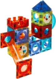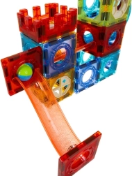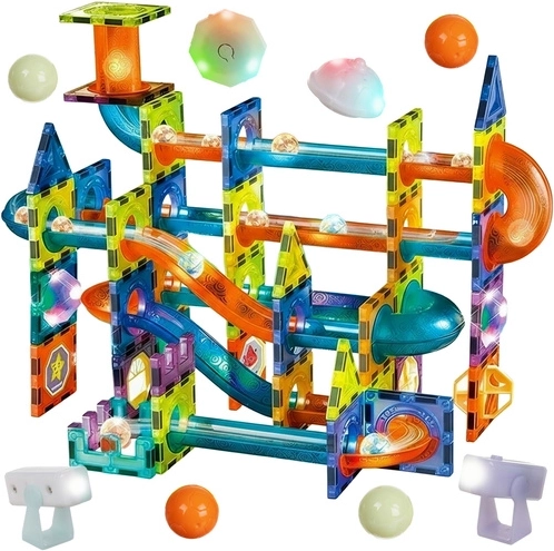 Magnetinės kaladėlės su rutuliuko trasa leidžia vaikams statyti bokštus, tiltus ir spiralinius nusileidimus bei stebėti, kaip rutuliukai lekia skaidriais tuneliais. Tvirtas magnetinis sujungimas užtikrina konstrukcijų stabilumą be bereikalingų griūčių, o LED elementai paverčia kiekvieną statinį šviesų šou. Pridedamas ir spalvotas nuoseklus vadovas, kuris palengvina greitą startą ir įkvepia naujų idėjų.