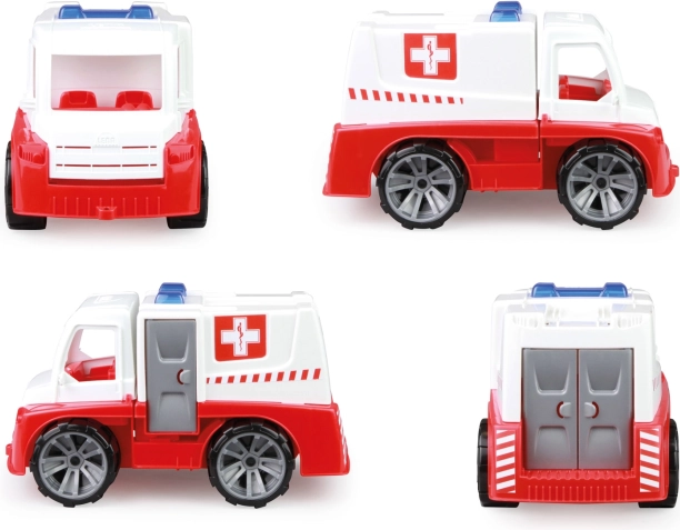 Plastikinis greitosios pagalbos automobilis LENA TRUXX sukurtas saugiam ir kūrybiškam vaikų žaidimui. Dėl patvarios konstrukcijos tinka tiek vaikų kambariui, tiek smėlio dėžei. Atsidarančios galinės durys ir pakeliama kabina padeda kurti realistiškus gelbėjimo scenarijus, o gelbėtojo figūrėlė su neštuvais lavina fantaziją ir socialinius įgūdžius.