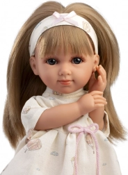 Rankų darbo LLORENS lėlės užtikrina precizišką meistrystę, realistiškas detales ir kokybiškas medžiagas. 35 cm ūgio lėlė ELENA turi vinilines galūnes, minkštą tekstilinį kūnelį ir yra aprengta stilingu keturių dalių rūbeliu iš malonių audinių. Puikiai tinka vaidmenų žaidimams, rengimui ir vaiko fantazijos lavinimui.