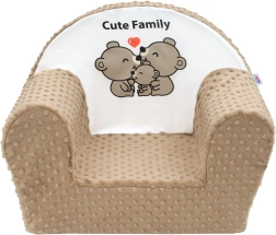 Stilingas ir funkcionalus minky foteliukas iš čekų prekės ženklo NEW BABY taps mėgstama vieta poilsiui, skaitymui ir žaidimams. Minkštas minky audinys su būdingais burbuliukais skatina sensomotorinę stimuliaciją ir yra malonus liesti. Žavus meškučių Cute Family atspaudas puikiai papildo vaikų kambario interjerą.