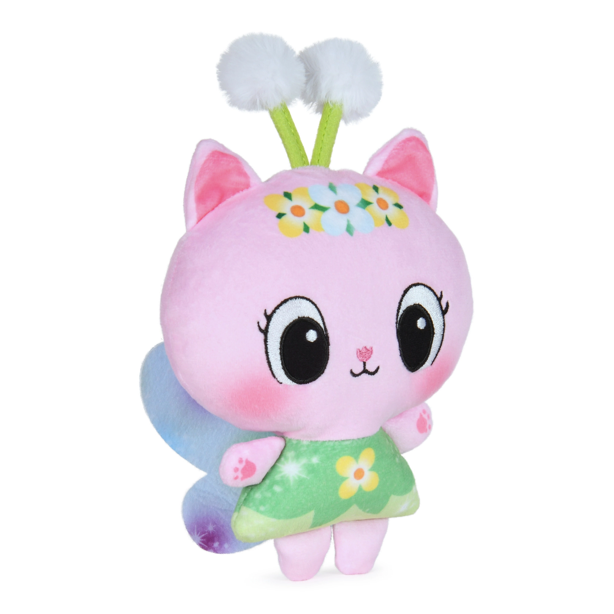 Žavinga pliušinė katytė iš pamėgto serialo Gabby’s Dollhouse pradžiugins kiekvieną vaiką. Ji turi minkštą kūnelį, išsiuvinėtas veido detales, žalias sukneles su gėlėmis ir švelnius sparnelius. Dėl autentiško dizaino, kaip seriale, ji idealiai tinka žaidimams ir glostymams.