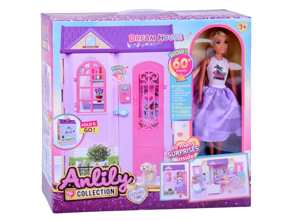 Rinkinyje yra lėlė ANLILY su ilgais, šukavimui tinkamais plaukais, baldai (lova su patalyne, spintelė su stalčiais, kabyklą, vonia, WC, toletinis staliukas su taburete, valgomasis komplektas), virtuvės reikmenys ir daug priedų išvaizdos priežiūrai ir gaminimui. Atidaromos durys ir langai, dekoracijos bei skambutis su baterijomis skatina realistišką vaidmenų žaidimą.