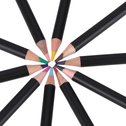 Šis gausus pieštukų rinkinys puikiai tinka vaikams, studentams ir kūrybingiems suaugusiesiems. Tvirti mediniai pieštukai su juoda danga ir spalvotais galais užtikrina patogų laikymą ir tikslius brūkšnius. Užtraukiamas dėklas viską laiko savo vietoje ir saugo pieštukus kelionėse.