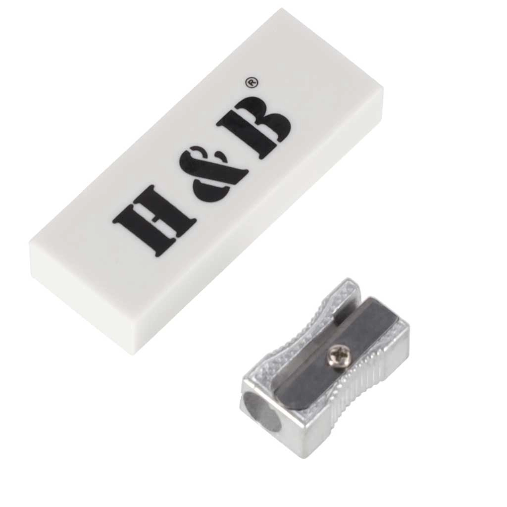 Rinkinyje yra kokybiškas trintukas ir metalinis drobtuvas, tad galite piešti, taisyti ir galąsti bet kada ir bet kur.