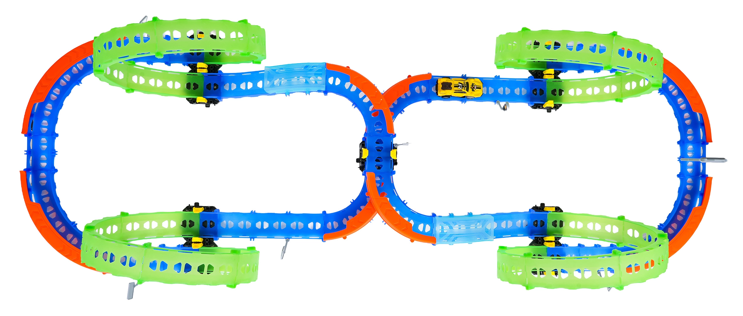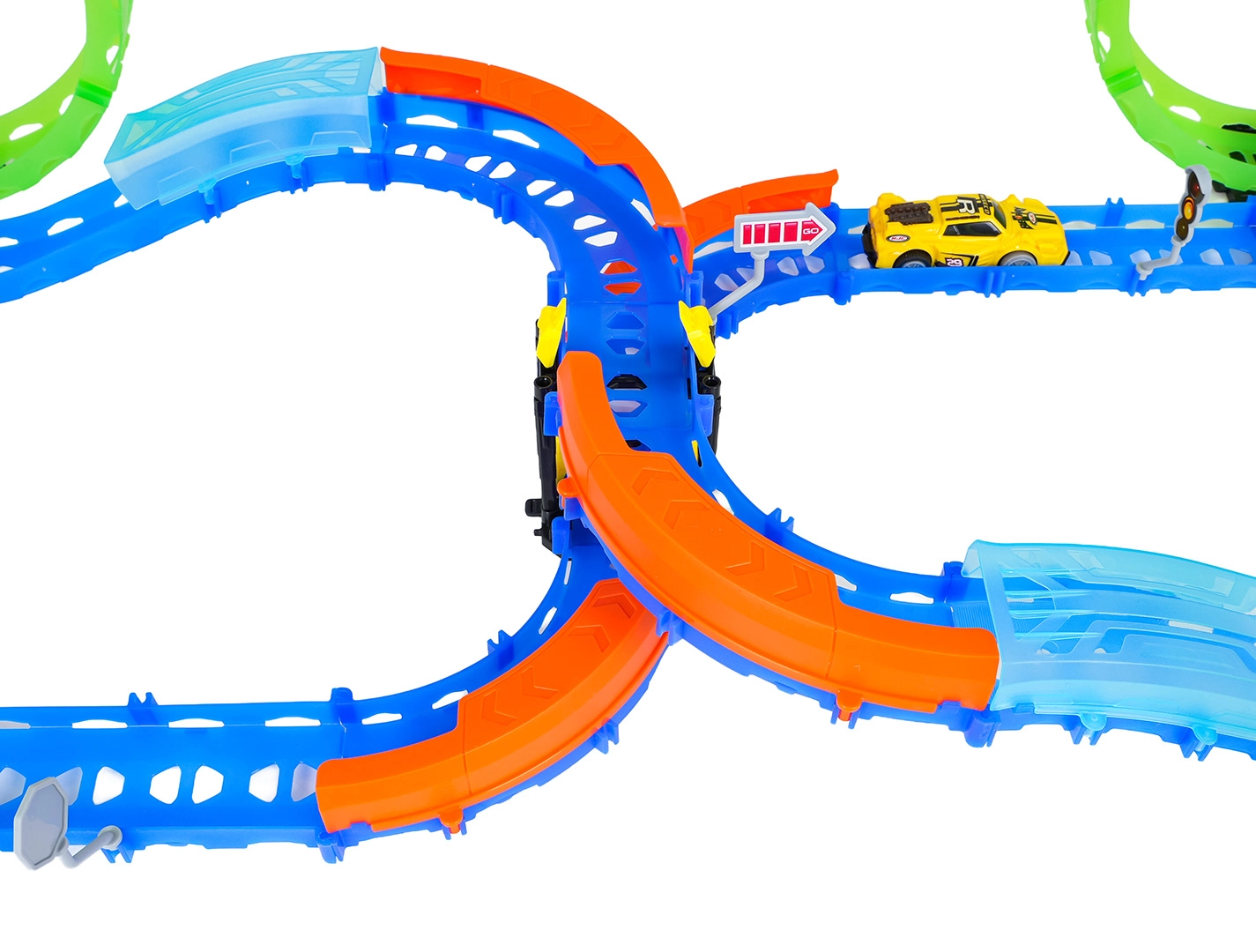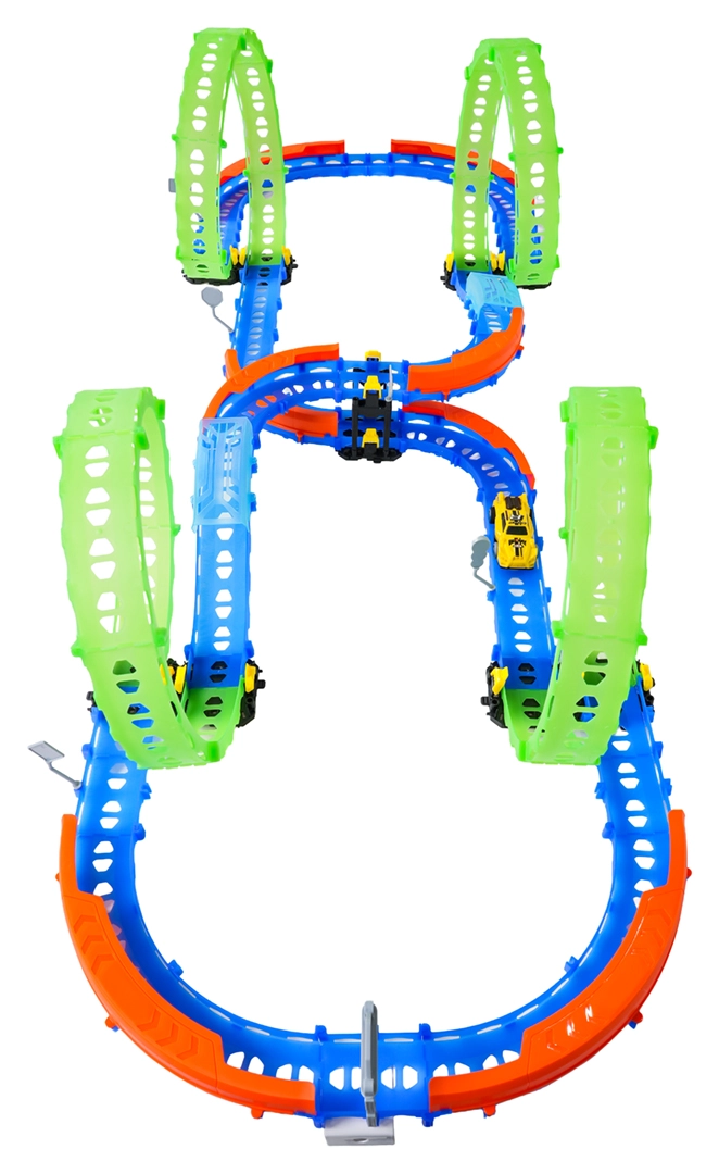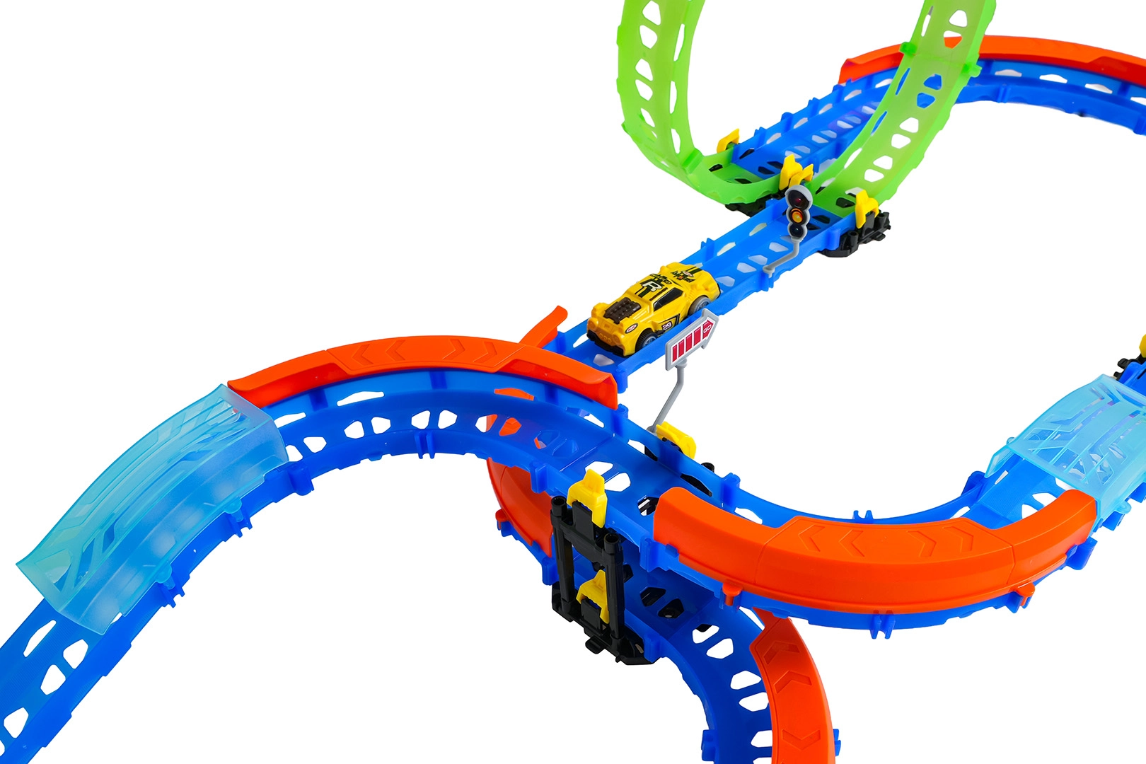 Ši spalvinga lenktynių trasa siūlo puikius akrobatinius važiavimus ir kūrybišką konstravimą. Dėl fluorescencinių kilpų ir automobilio šviesos efekto ji ypač išryškėja tamsoje, kur virsta ryškia trasa, kupina įtampos. Tvirti turėklai posūkiuose padeda išlaikyti automobilį saugiai kelyje.