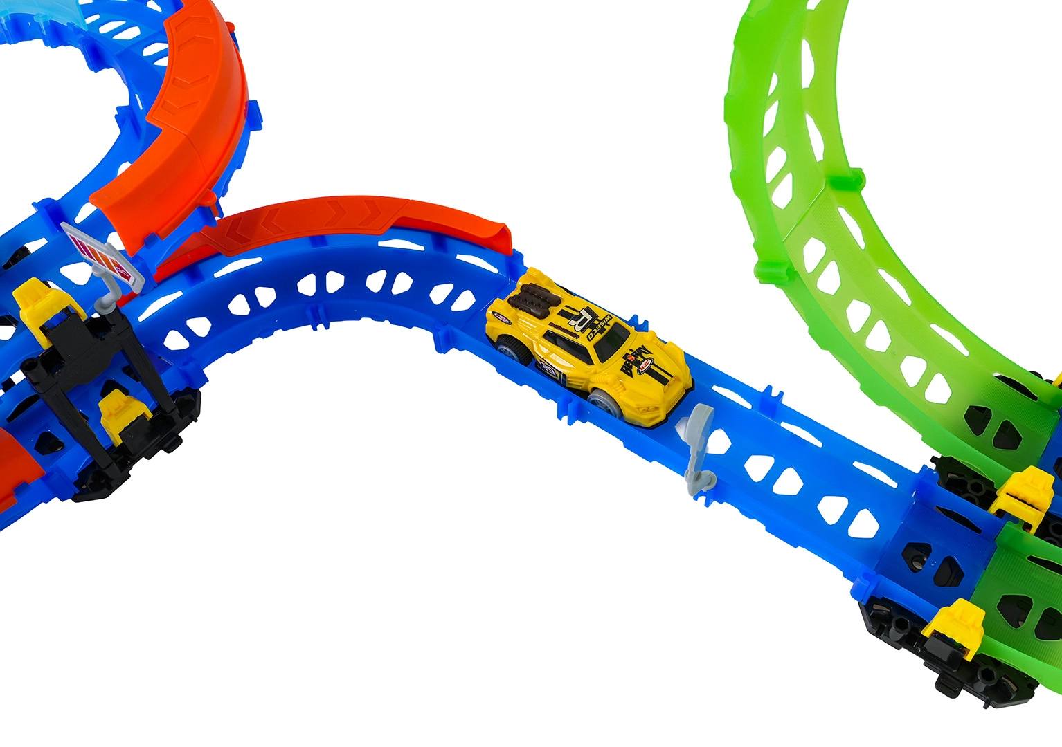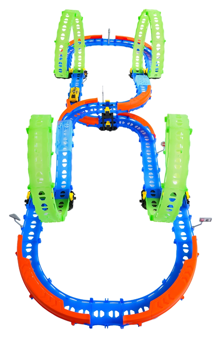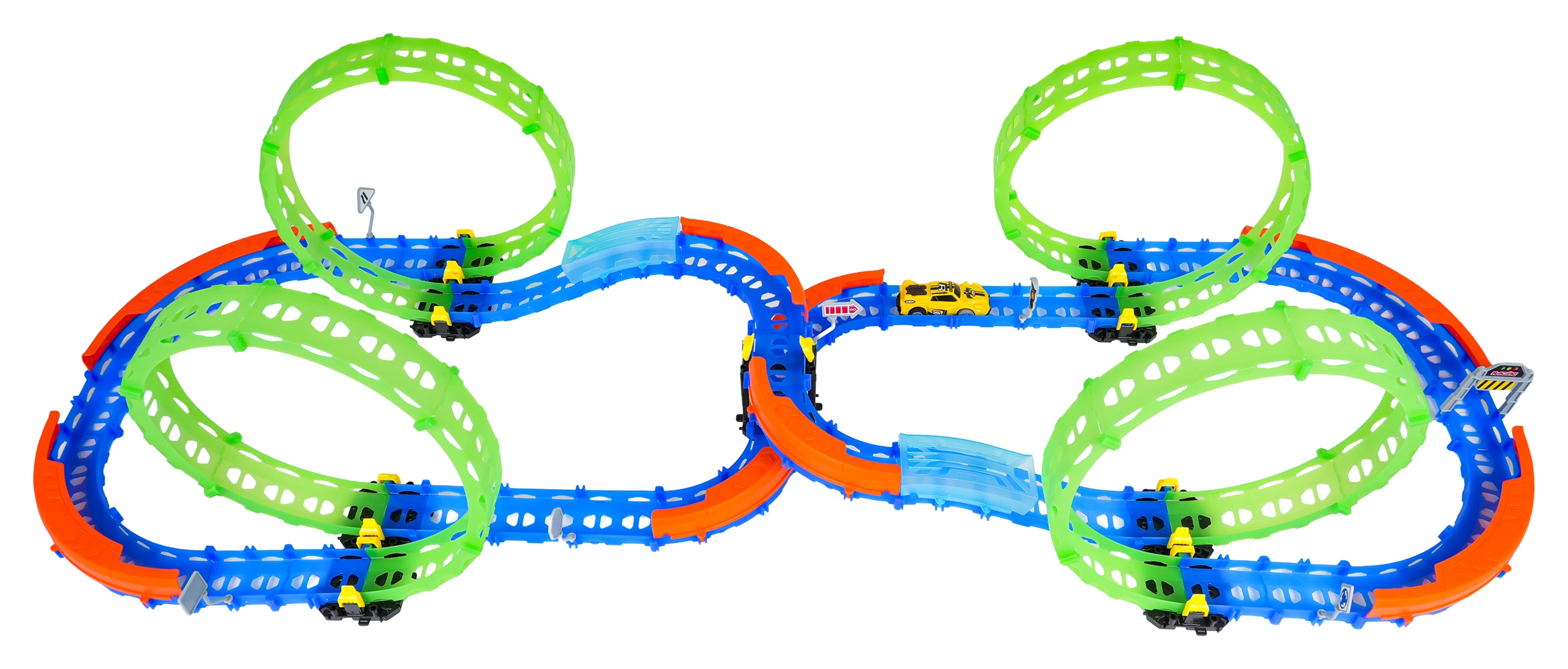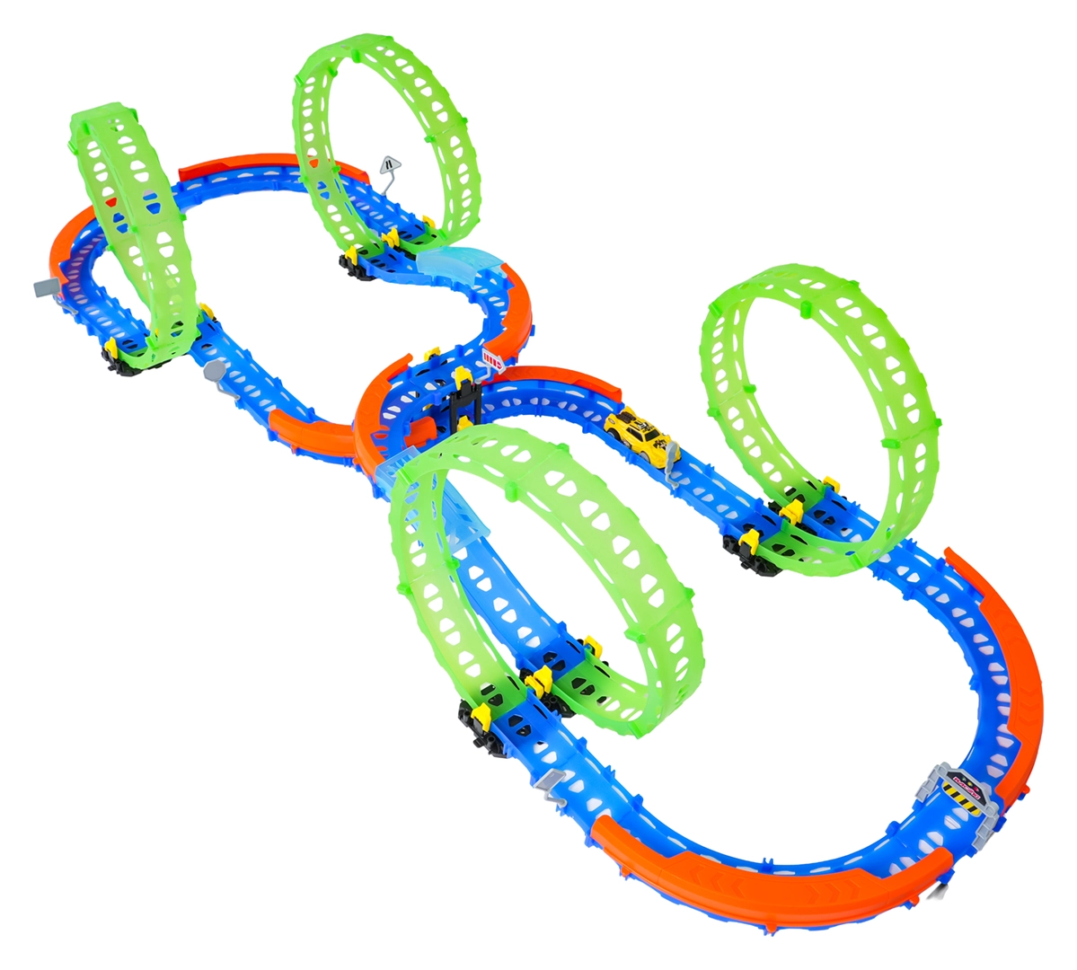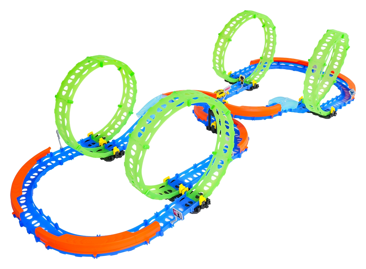 Ši spalvinga lenktynių trasa siūlo puikius akrobatinius važiavimus ir kūrybišką konstravimą. Dėl fluorescencinių kilpų ir automobilio šviesos efekto ji ypač išryškėja tamsoje, kur virsta ryškia trasa, kupina įtampos. Tvirti turėklai posūkiuose padeda išlaikyti automobilį saugiai kelyje.