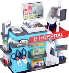 - Vaikiškas rinkinys žaidimams gydytoju ir vaistininku su kasa