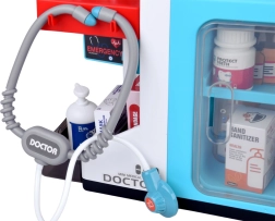 Šis interaktyvus rinkinys pavers vaikų kambarį mažąja gydytojo konsultacija, greitosios pagalbos punktu ir vaistine. Vaikai gali apžiūrėti pacientus, matuoti temperatūrą, „išrašyti vaistus“ ir treniruotis atsiskaityti prie kasos. Realistiški garsai ir tvarkinga stotelė su spintelėmis suteikia autentiškumo ir paverčia žaidimą įtraukiančia patirtimi.